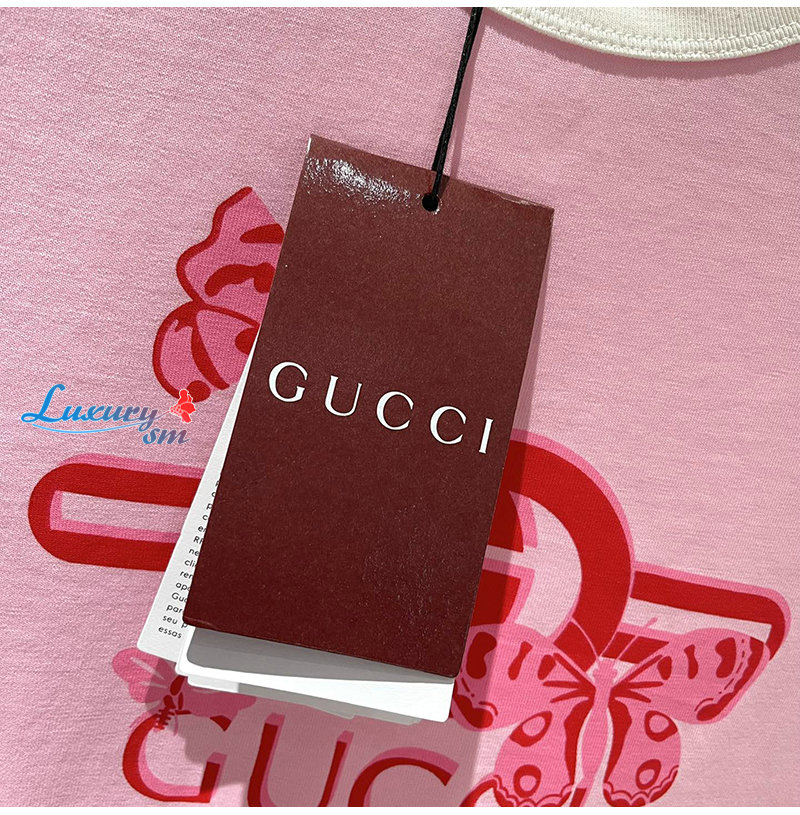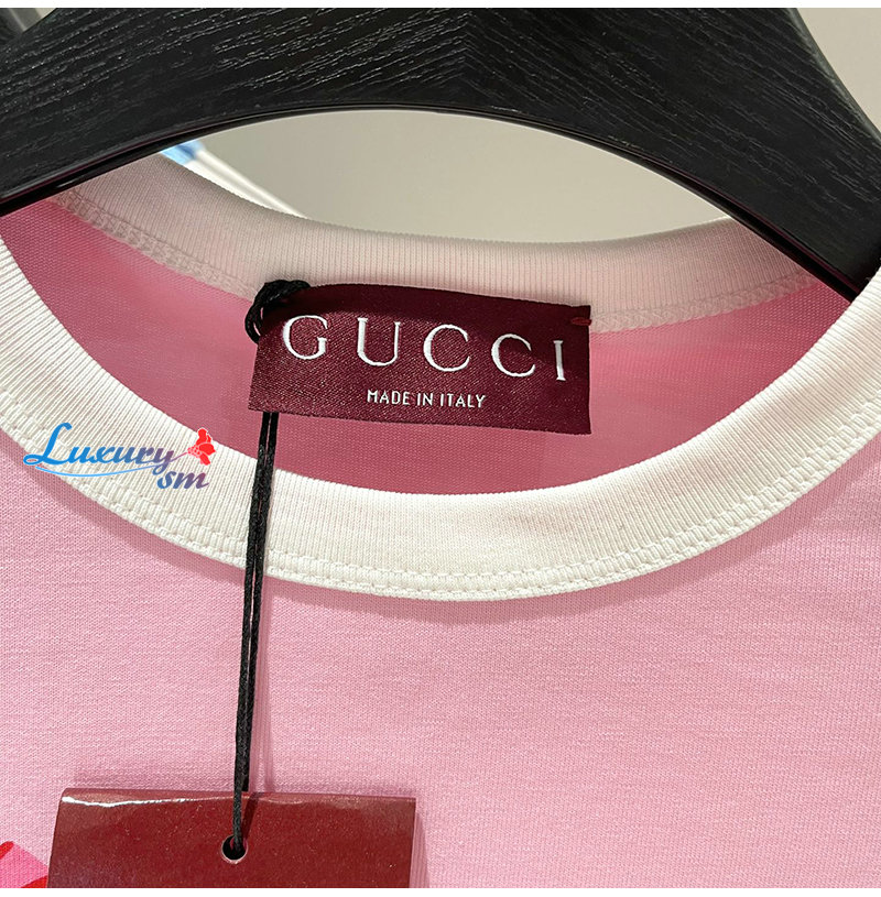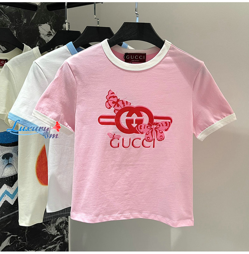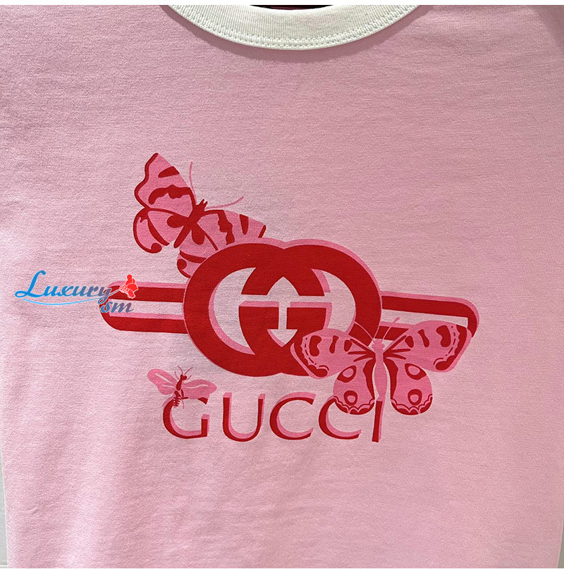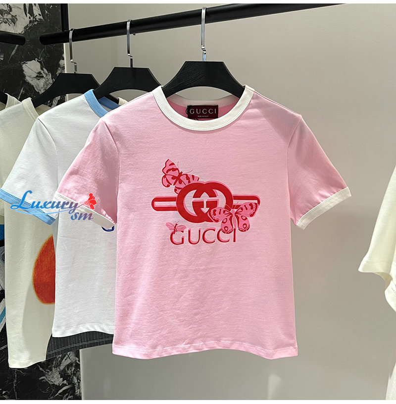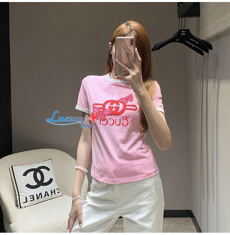 GUCCI-06232 구찌 핑크 프린트 장식 티셔츠 여성용