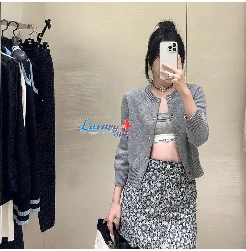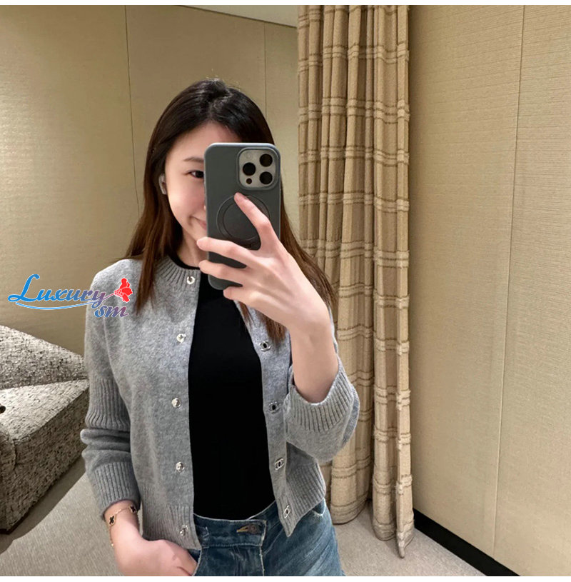 CHANEL-09226 샤넬 그레이 CC 로고 버클 가디건 여성용