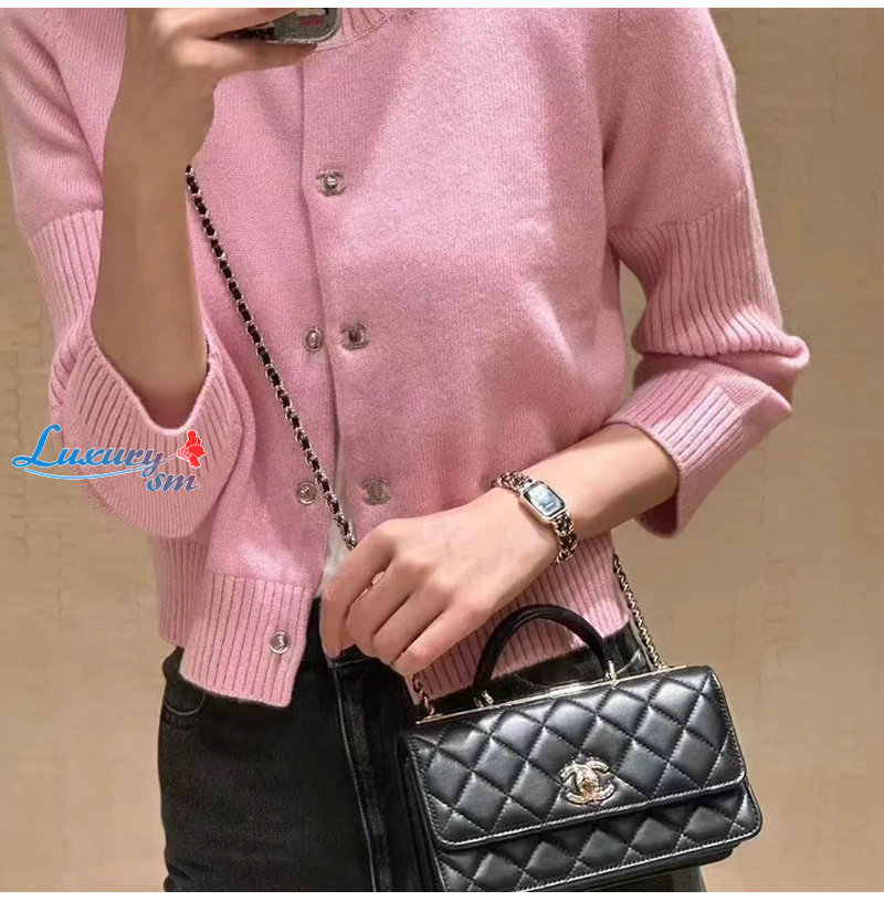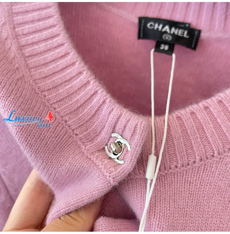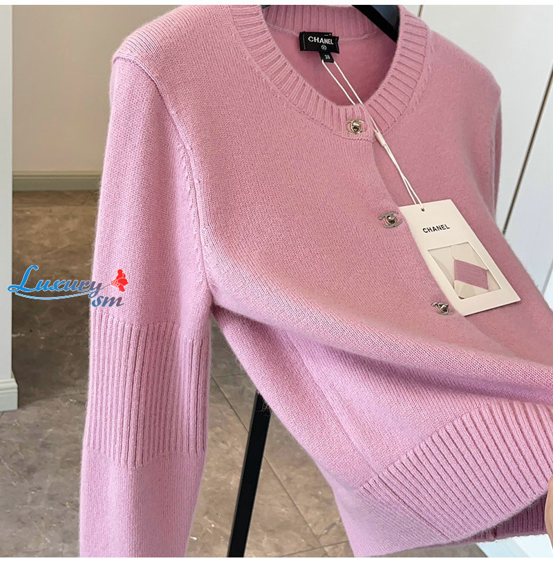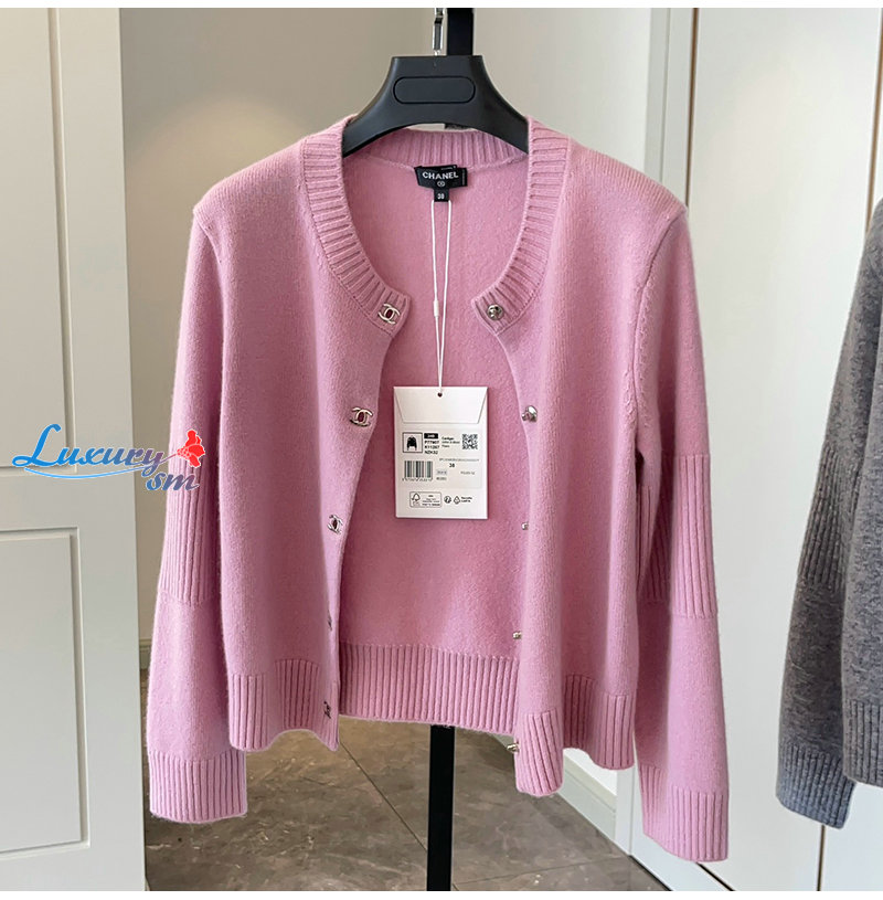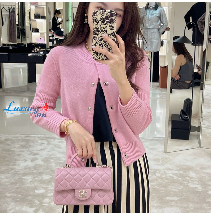 CHANEL-09227 샤넬 핑크 CC 로고 버클 가디건 여성용