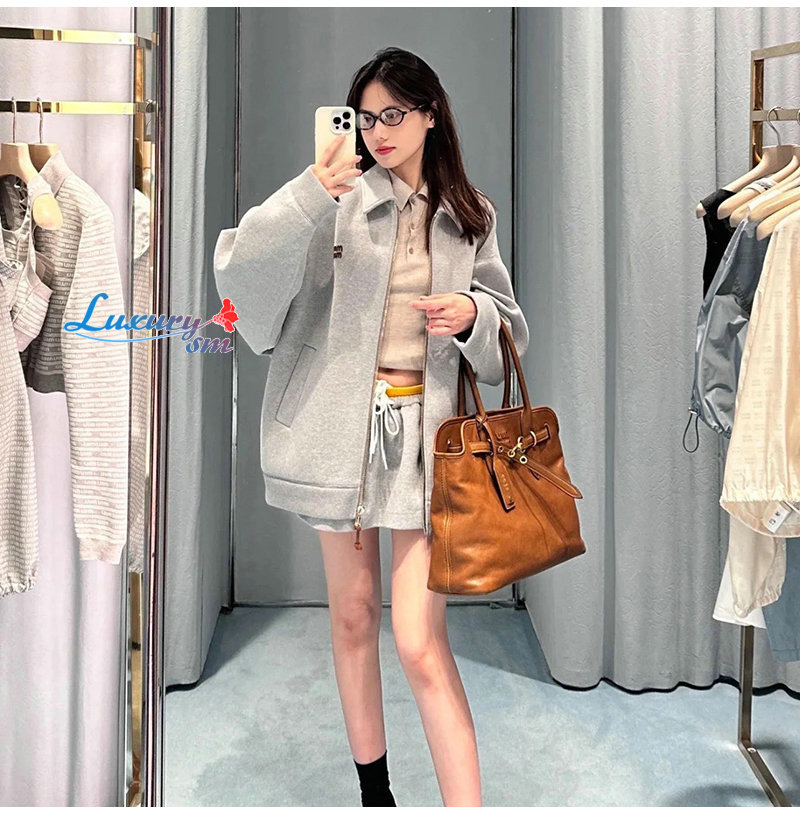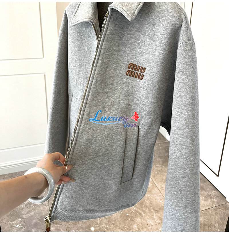 MIUMIU-09202 미우미우 그레이 로고 아플리케 장식 재킷 남여공용