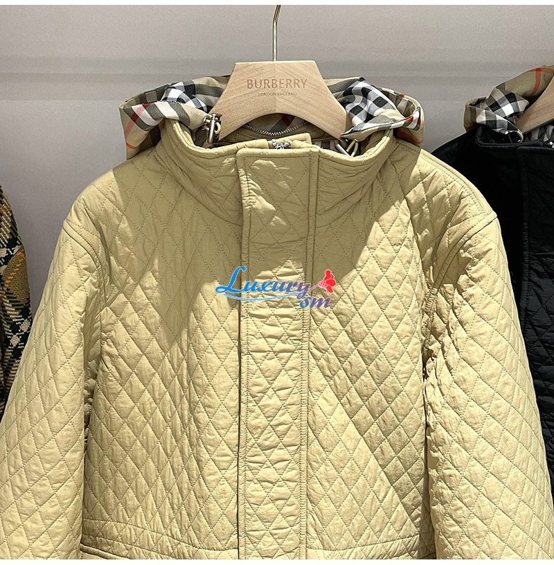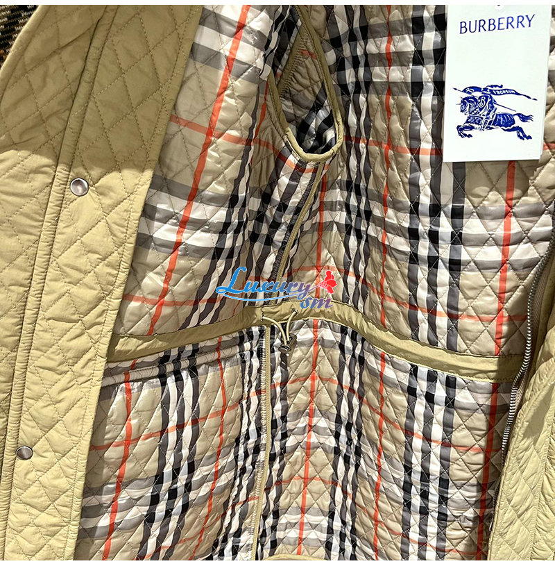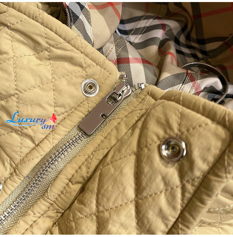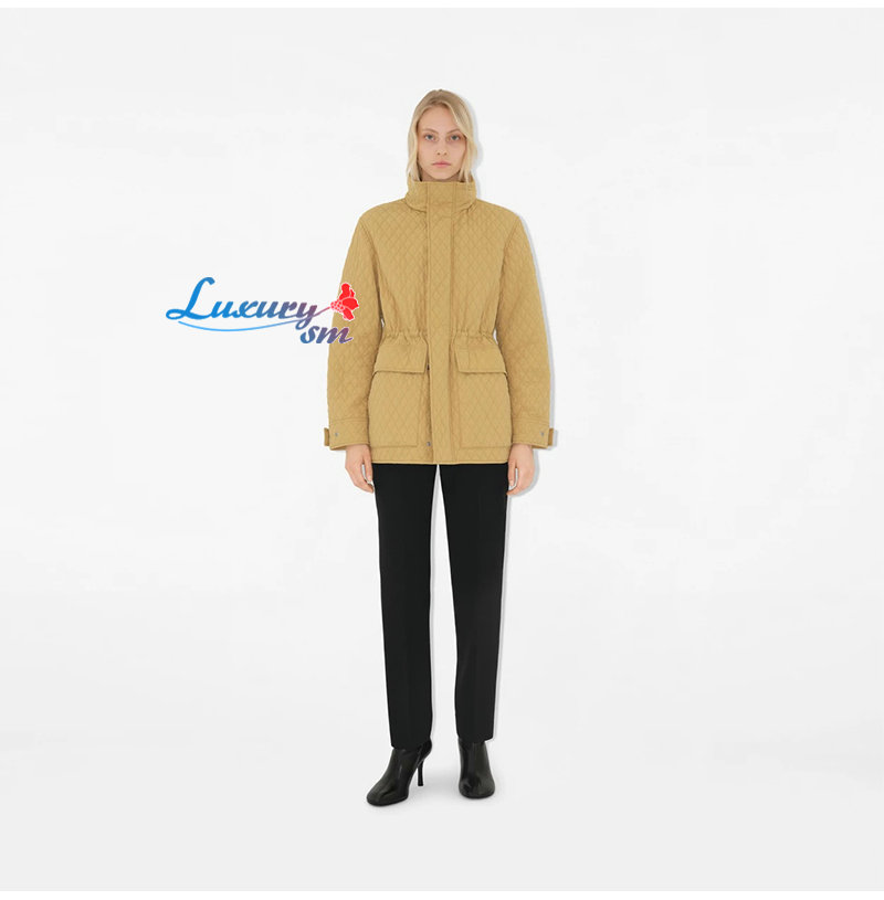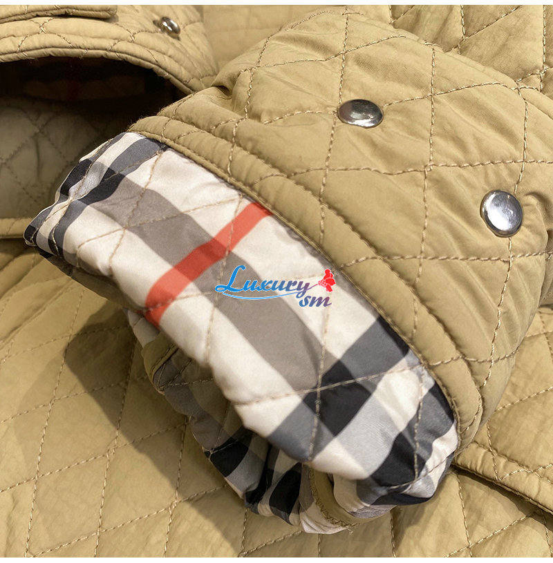 BURBERRY-80938771 버버리 베이지 체크 후드 퀼팅 나일론 재킷 여성용