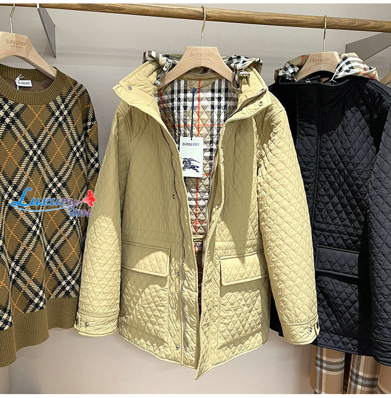 BURBERRY-80938761 버버리 블랙 체크 후드 퀼팅 나일론 재킷 여성용 가격 : 330,000원