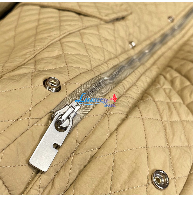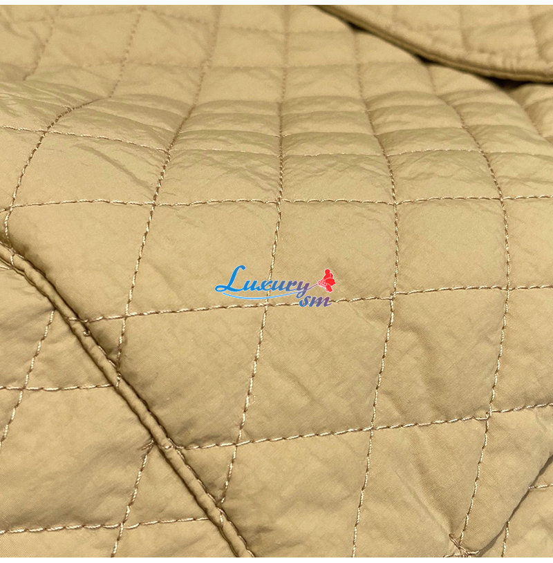 나일론 소재의 퀼팅 재킷 후드와 안감에 연출된