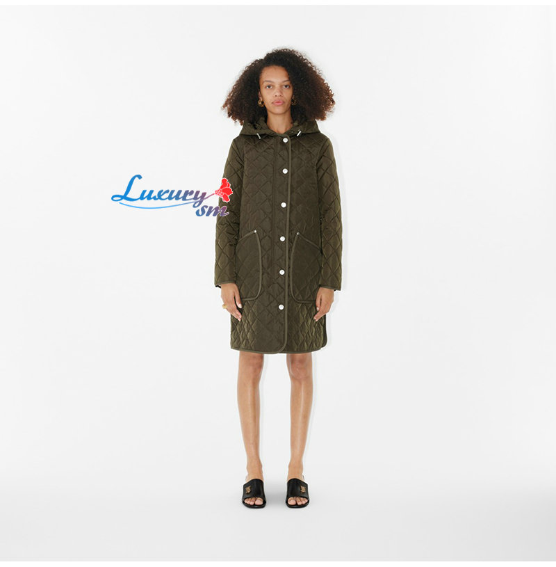 BURBERRY-80745231 버버리 카키 퀼팅 나일론 코트 여성용