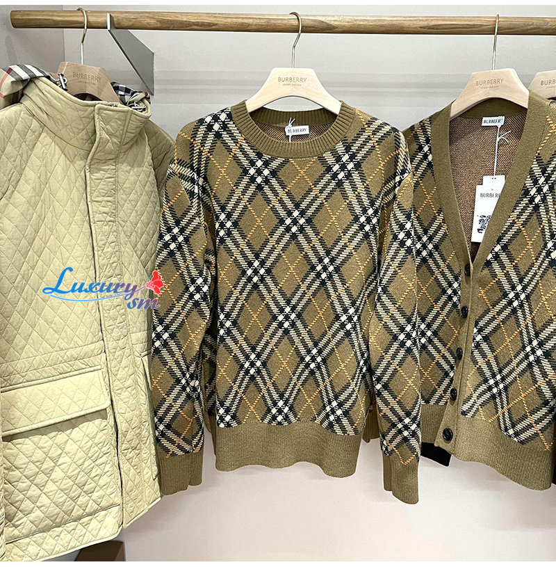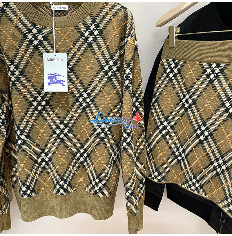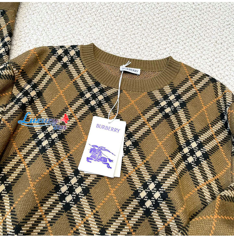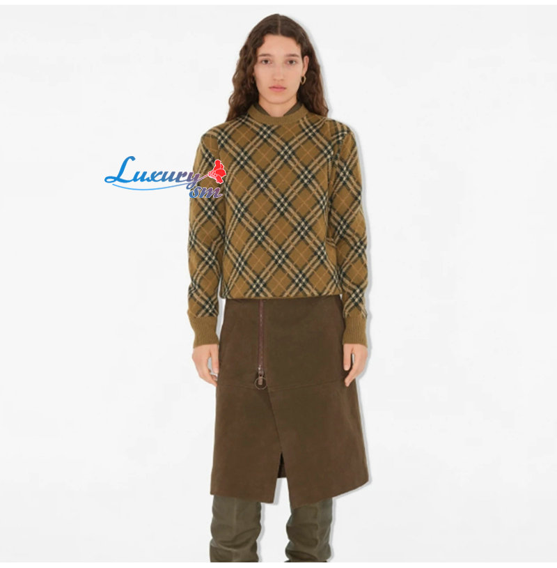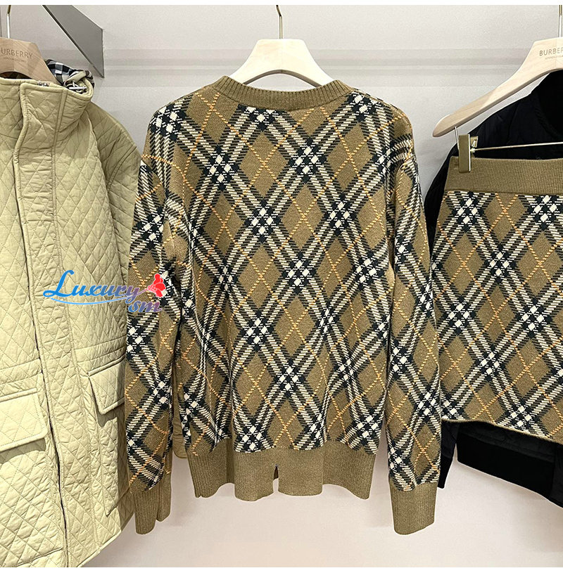 BURBERRY-80996221 버버리 쉬루 체크 울 모헤어 블렌드 스웨터 여성용