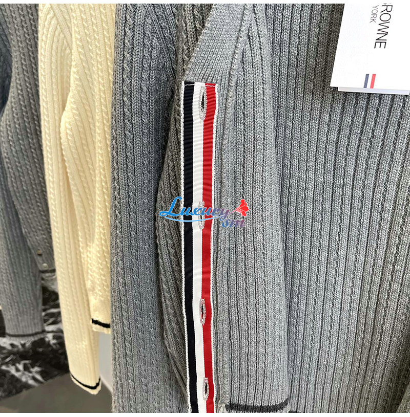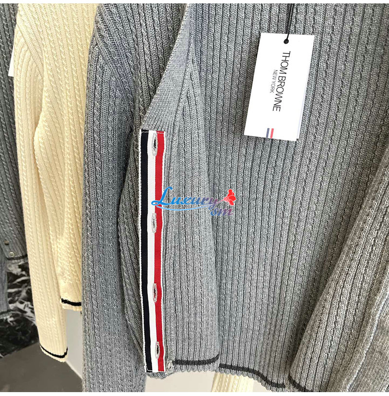 THOM BROWNE-11111 톰 브라운 아이보리 스트라이프 장식 가디건 여성용 가격 : 250,000원