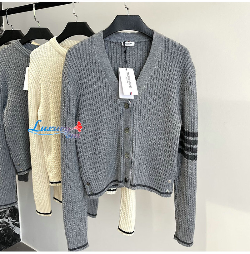 THOM BROWNE-11112 톰 브라운 그레이 스트라이프 장식 가디건 여성용