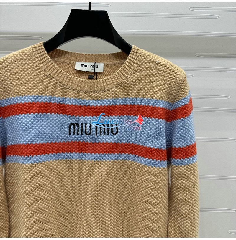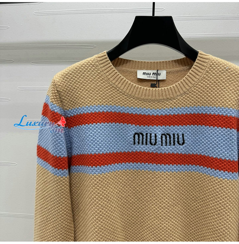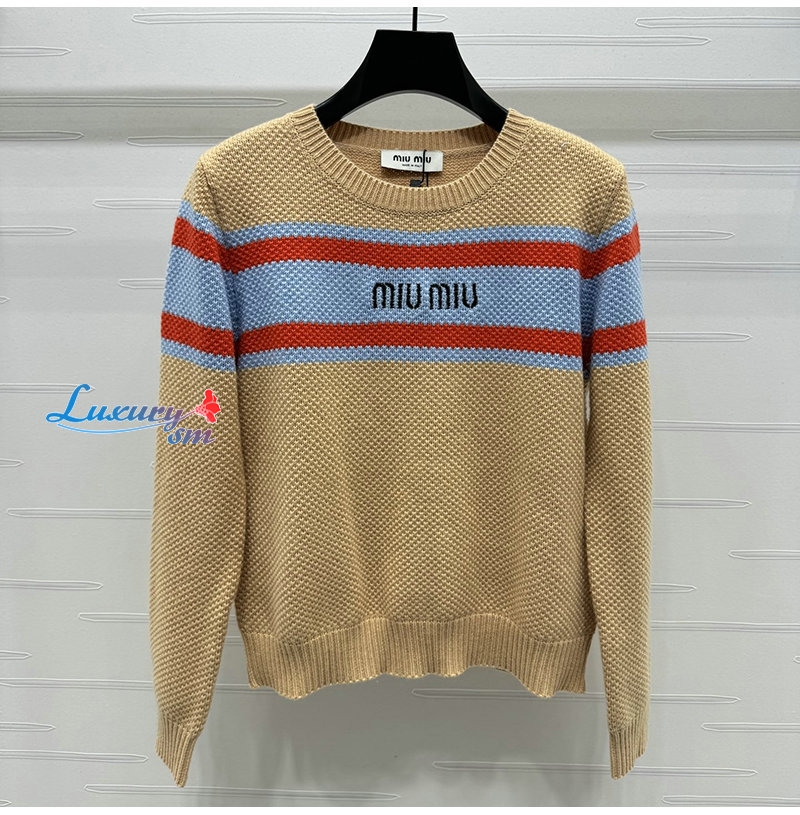 MIUMIU-111614 미우미우 베이지 스트라이프 장식 스웨터 여성용
