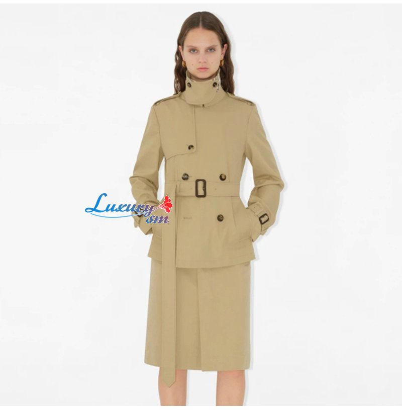BURBERRY-81052991 버버리 베이지 코튼 블렌드 트렌치 재킷 여성용