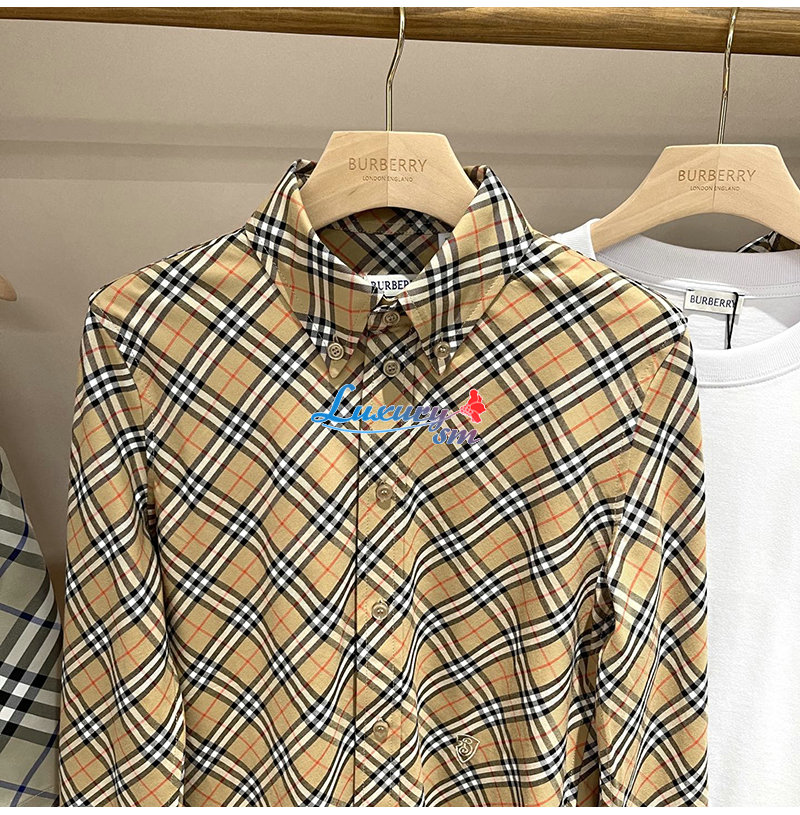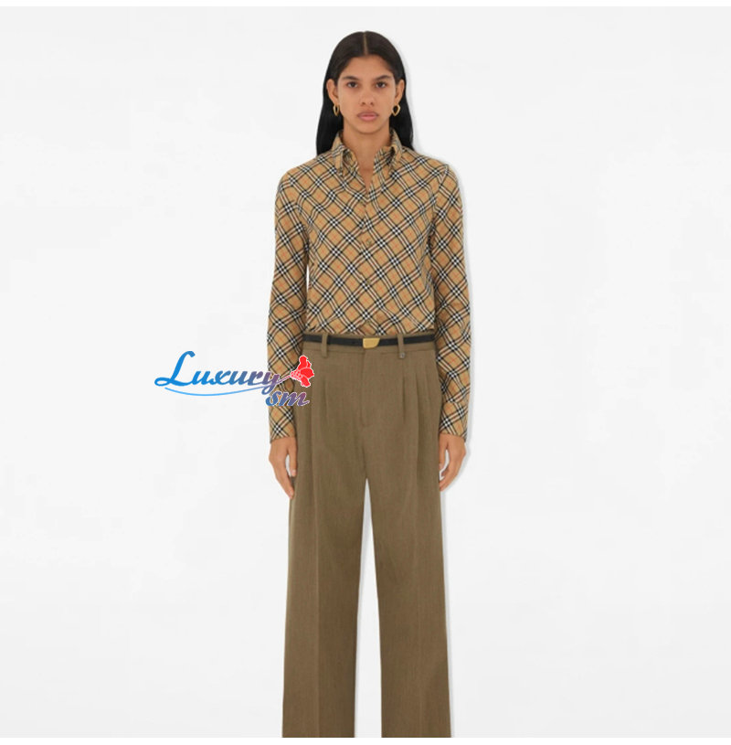 BURBERRY-80982521 버버리 샌드 체크 코튼 셔츠 여성용