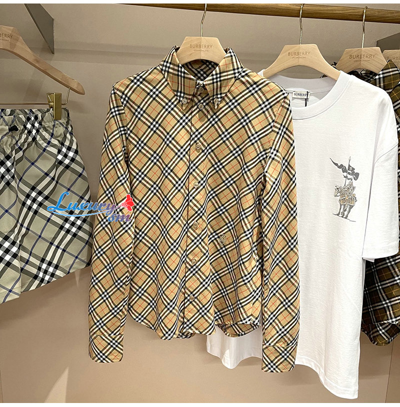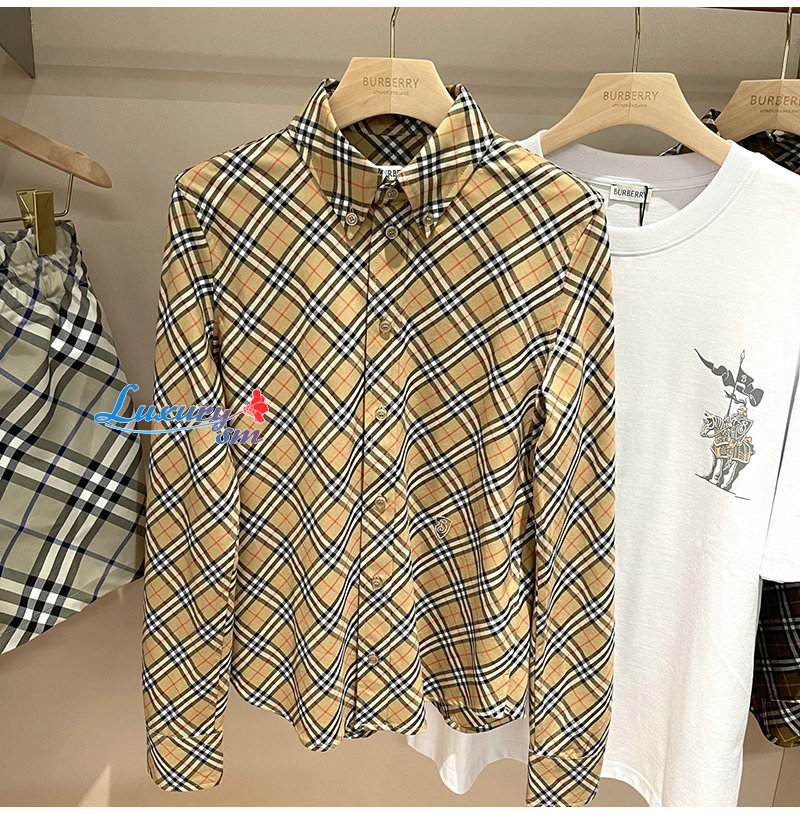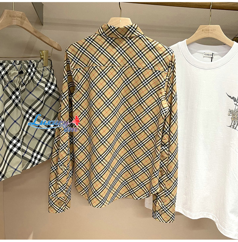 BURBERRY-80982551 버버리 그레인 체크 코튼 셔츠 여성용