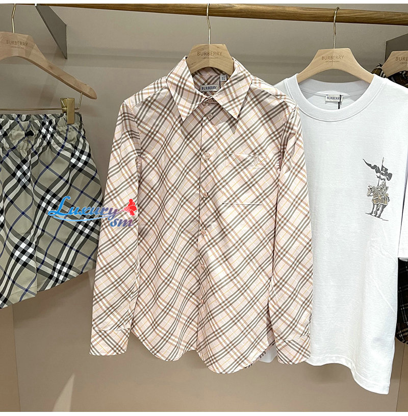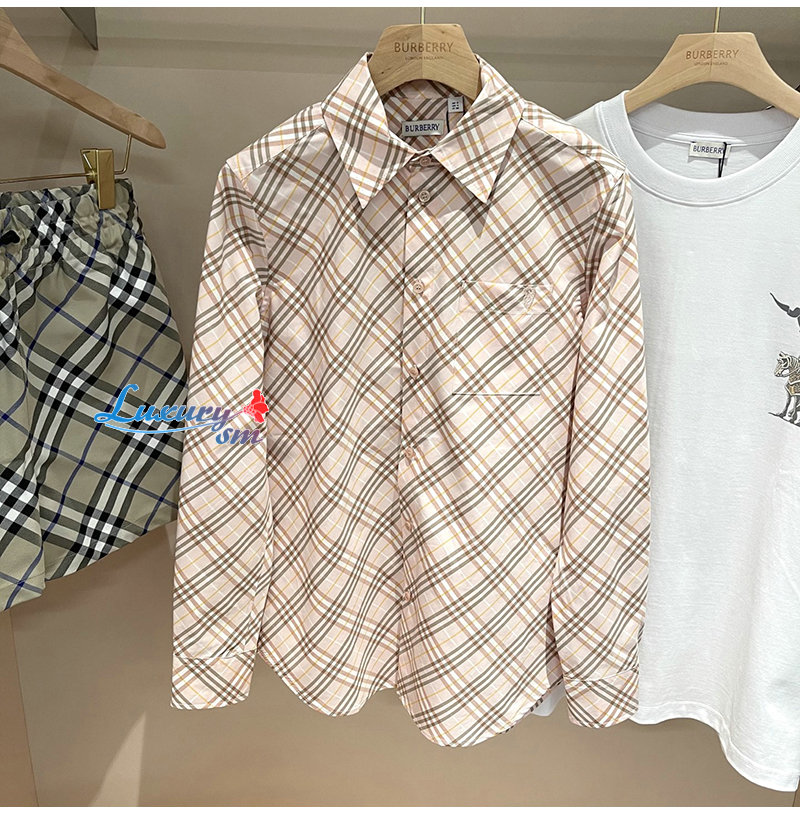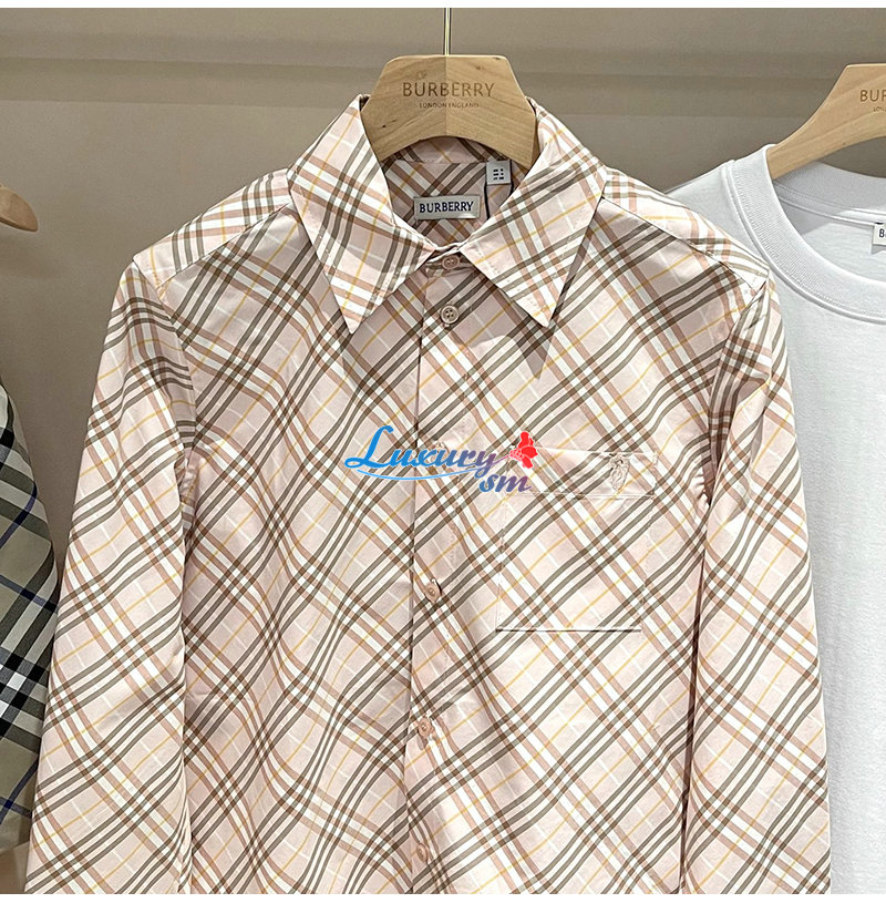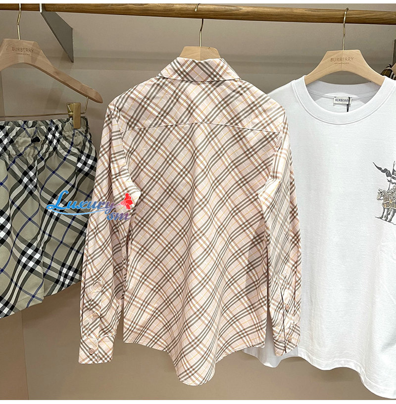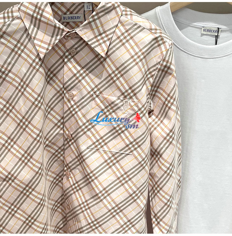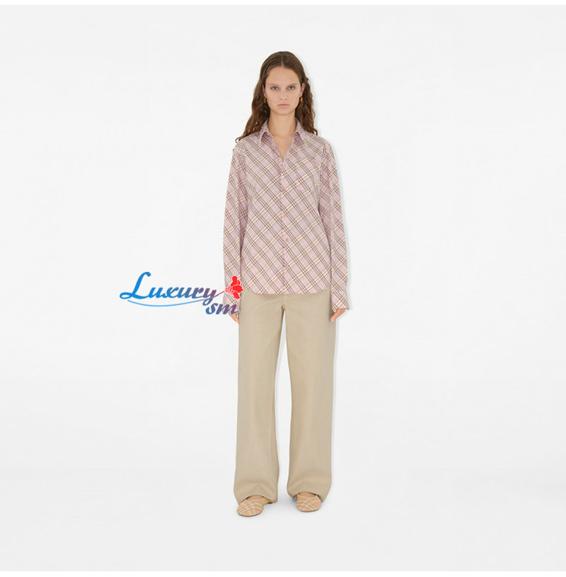 BURBERRY-80982521 버버리 핑크 체크 코튼 셔츠 여성용