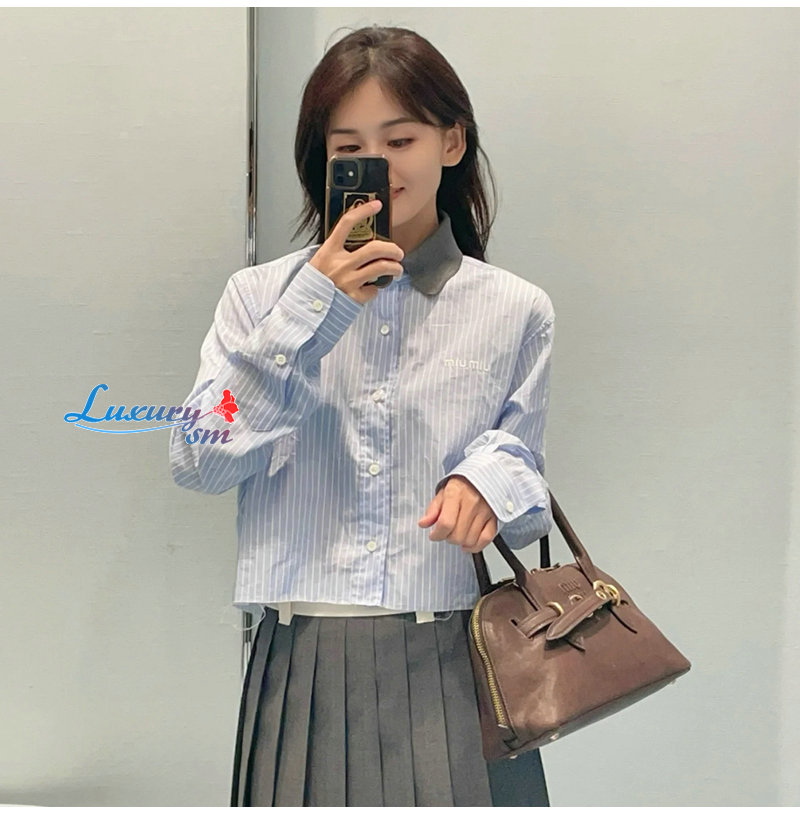 패턴과 라인의 셔츠로 미우미우스타일 특유의