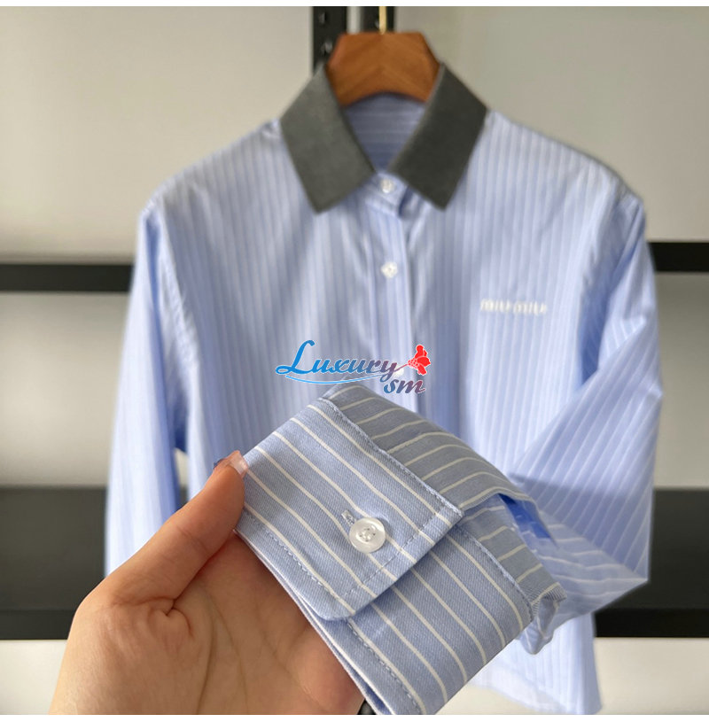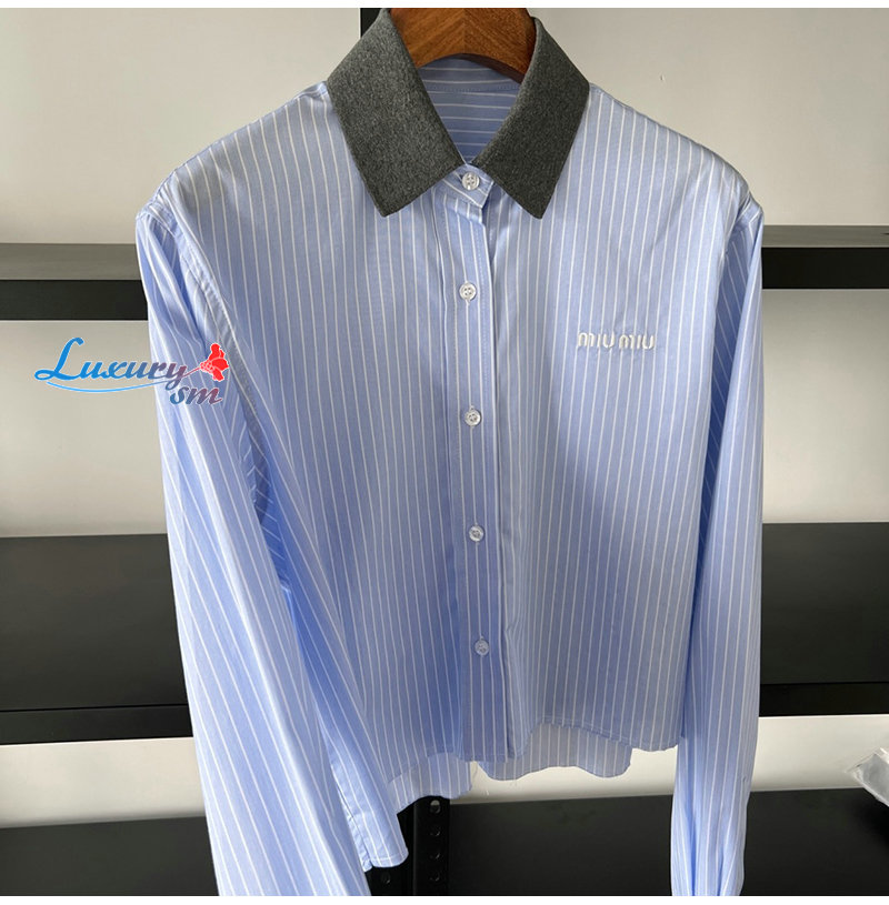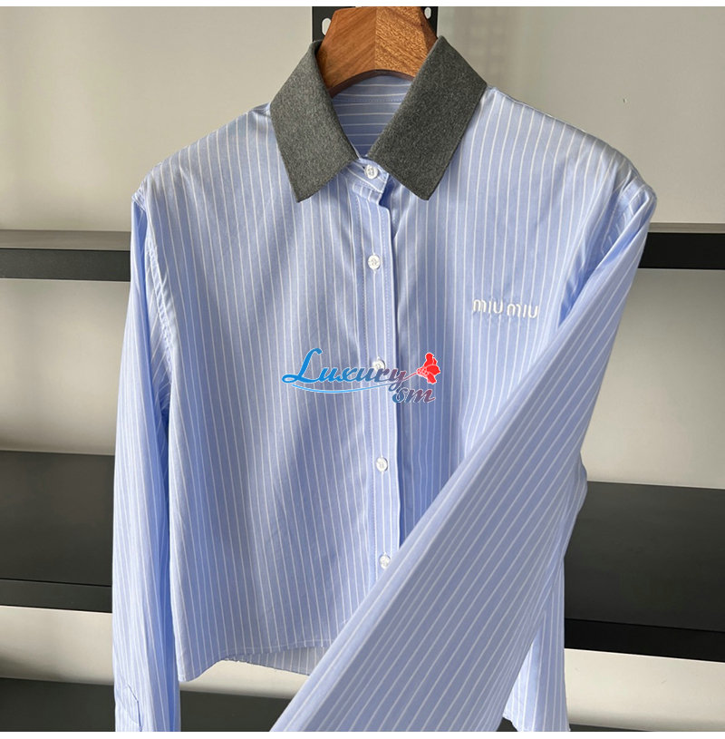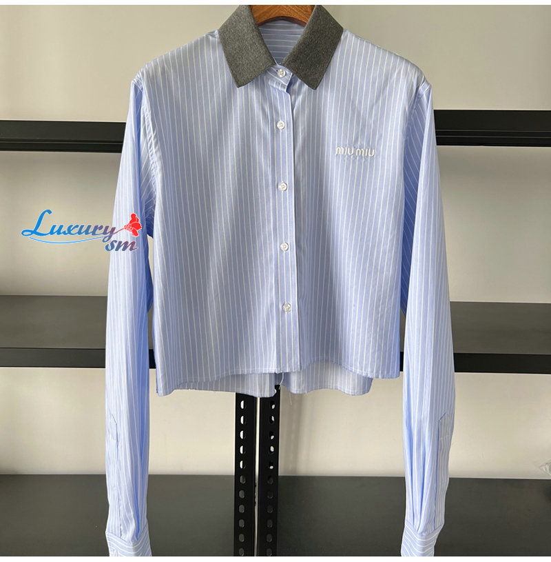 MIUMIU-MK1924 미우미우 라이트 블루 체크 셔츠 여성용