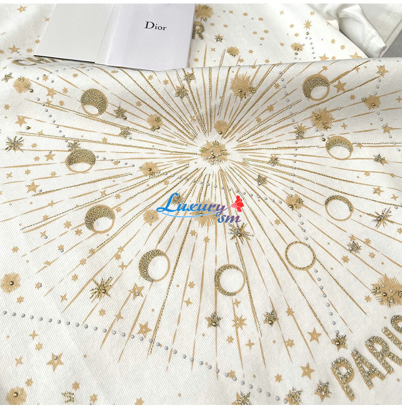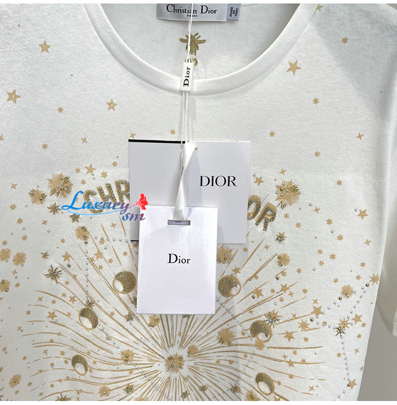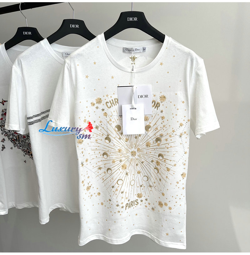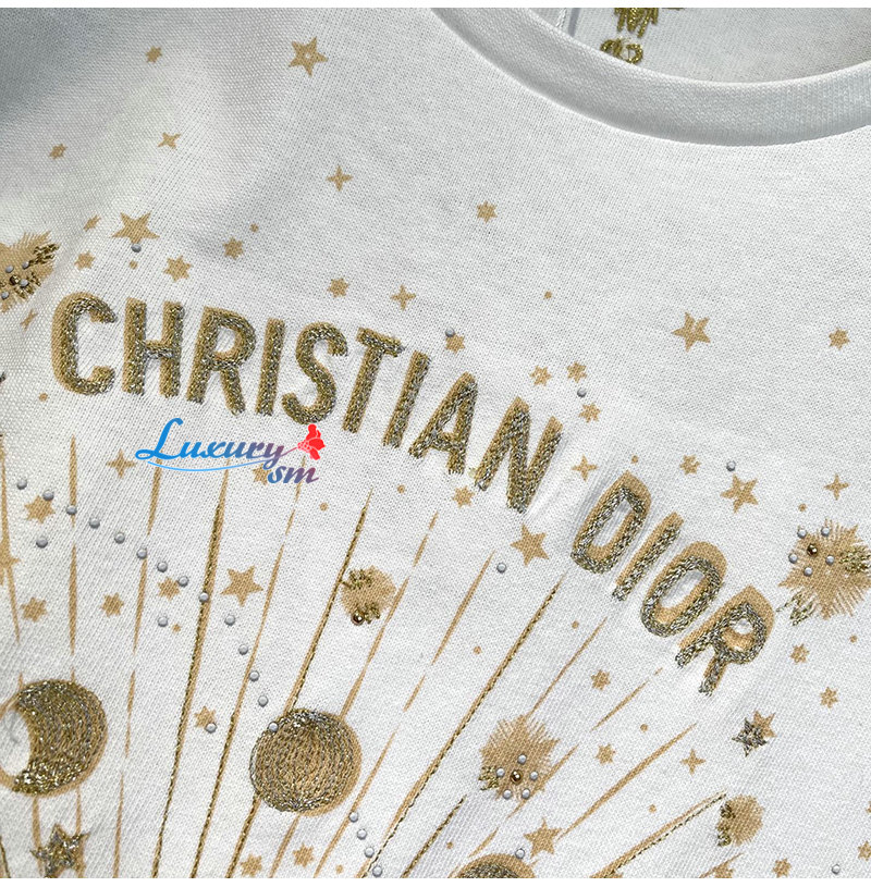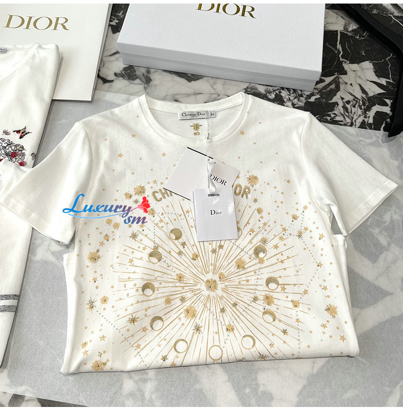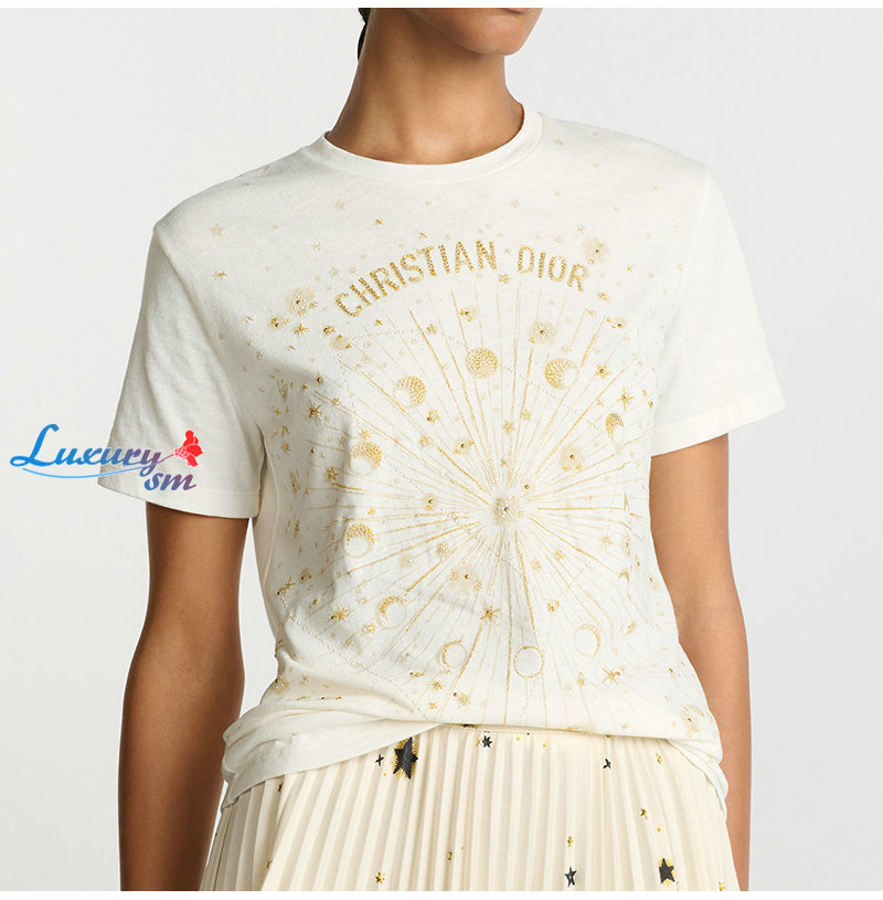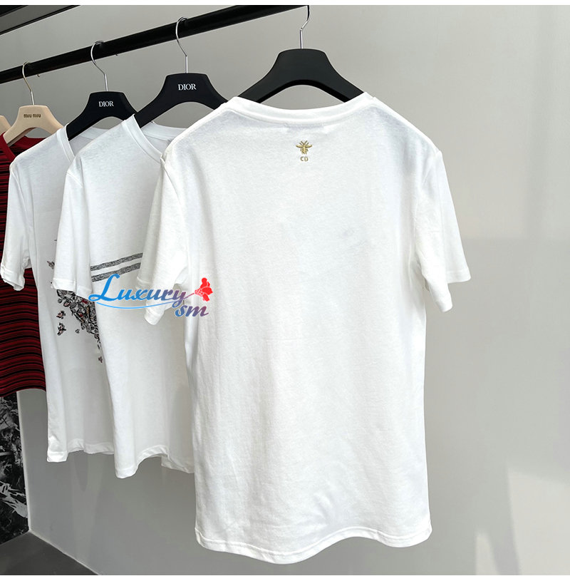DIOR-03242 디올 화이트 아플리케 장식 티셔츠 여성용