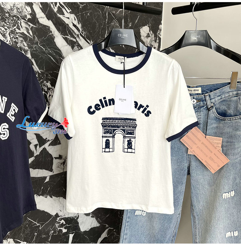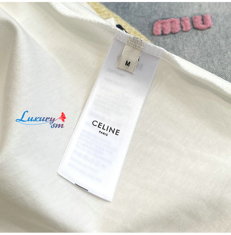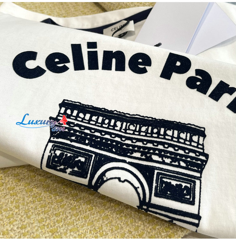 CELINE-03243 셀린느 화이트 아플리케 장식 티셔츠 여성용