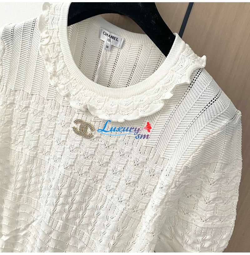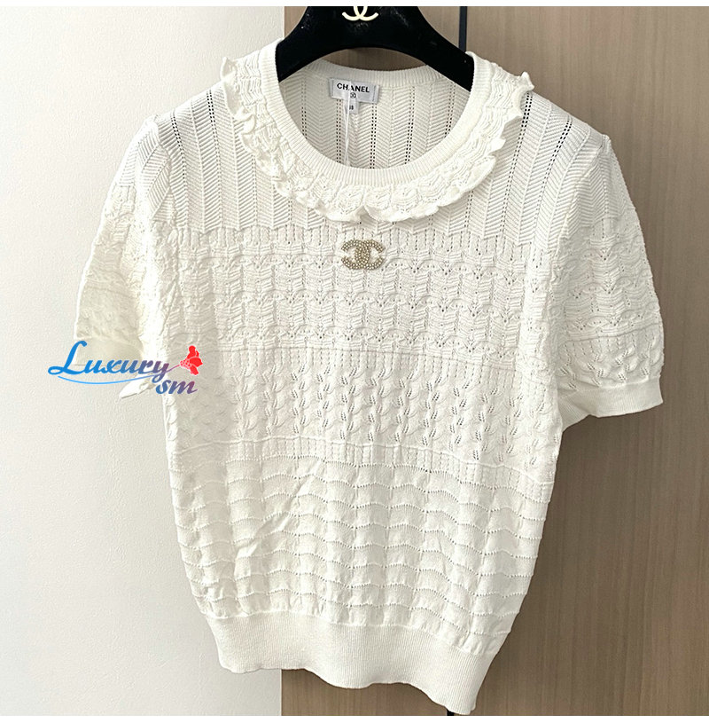 CHANEL-07263 샤넬 화이트 니트 코튼 티셔츠