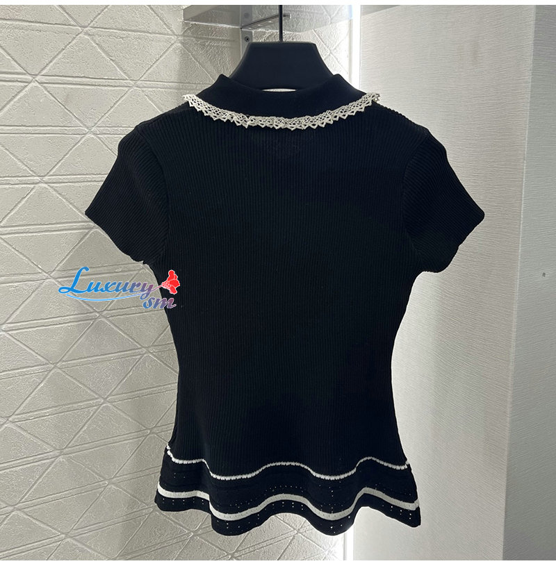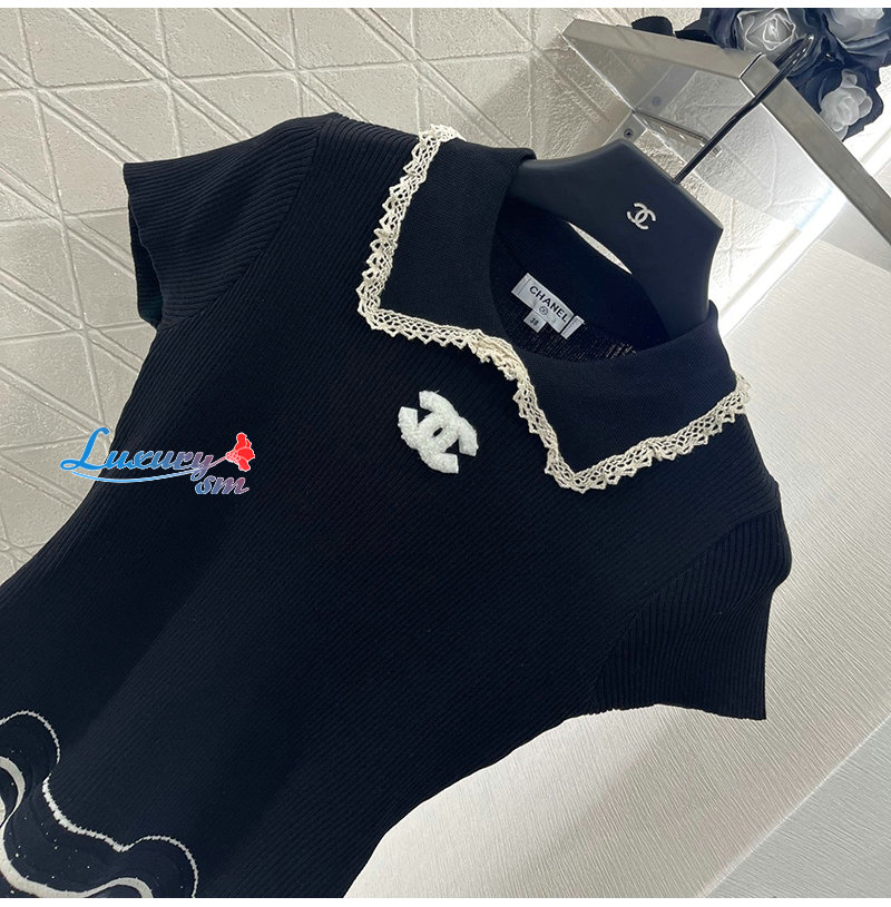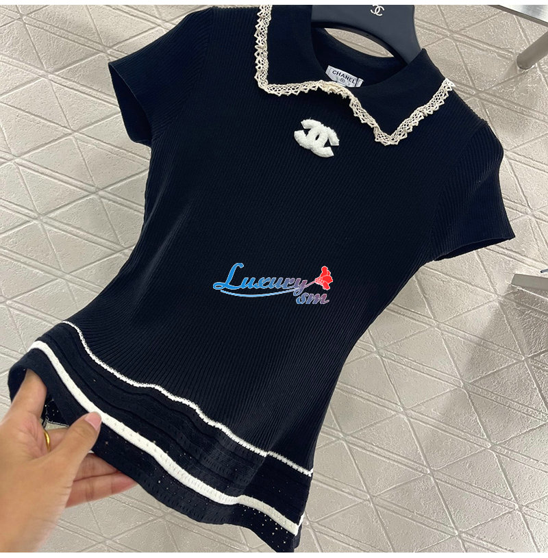 CHANEL-07269 샤넬 블랙 니트 코튼 폴로 티셔츠 여성용