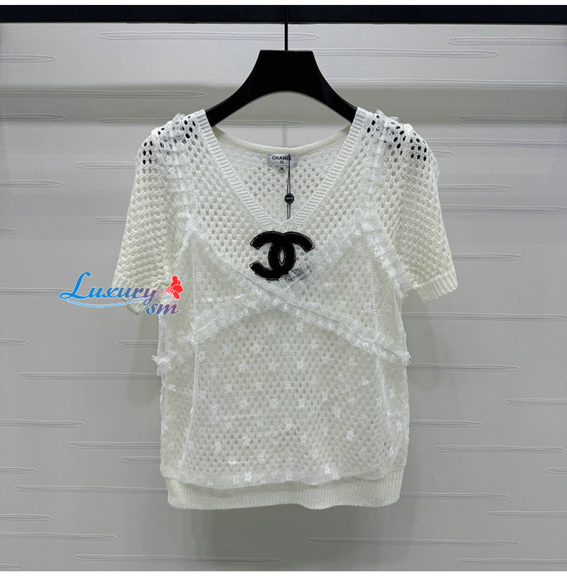 CHANEL-072613 샤넬 화이트 V넥 시스루 티셔츠 여성용