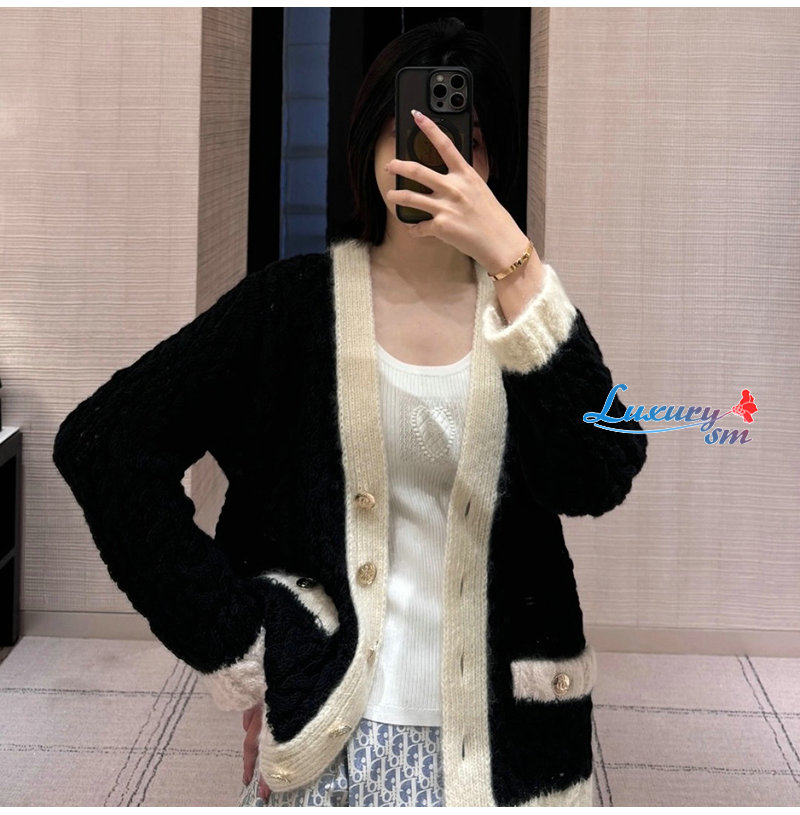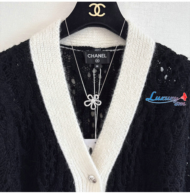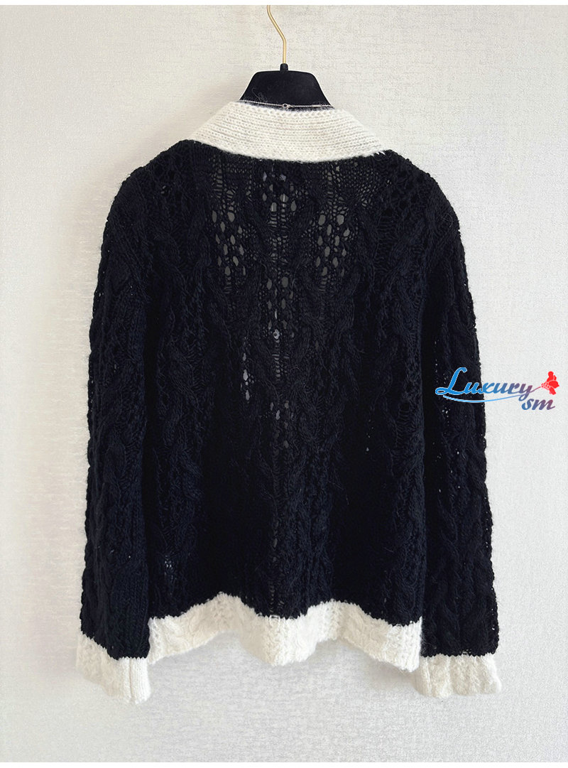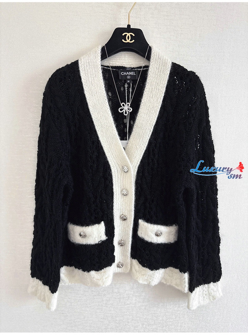 CHANEL-082012 샤넬 블랙/화이트 니트 코튼 가디건