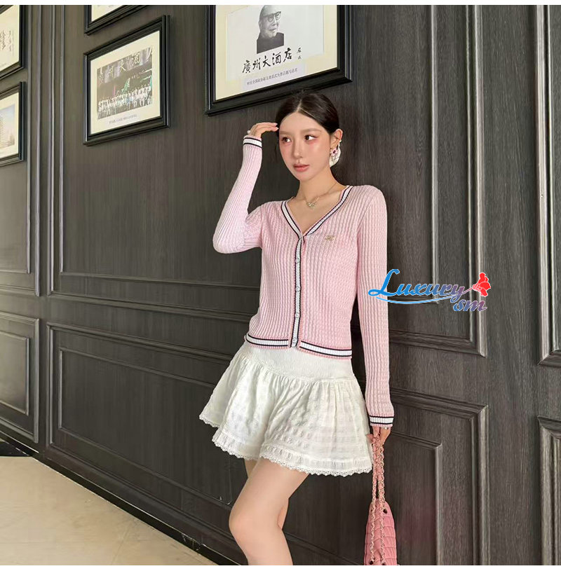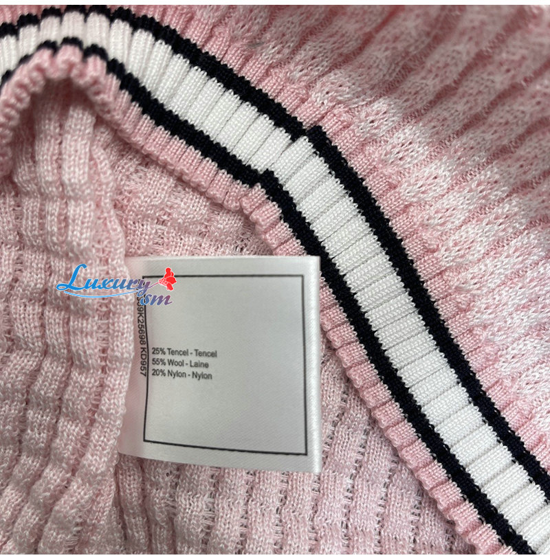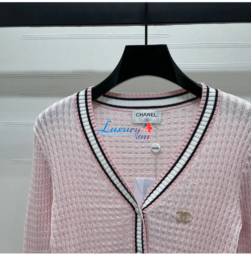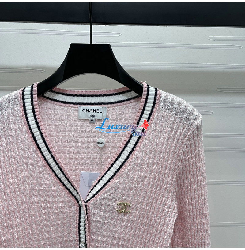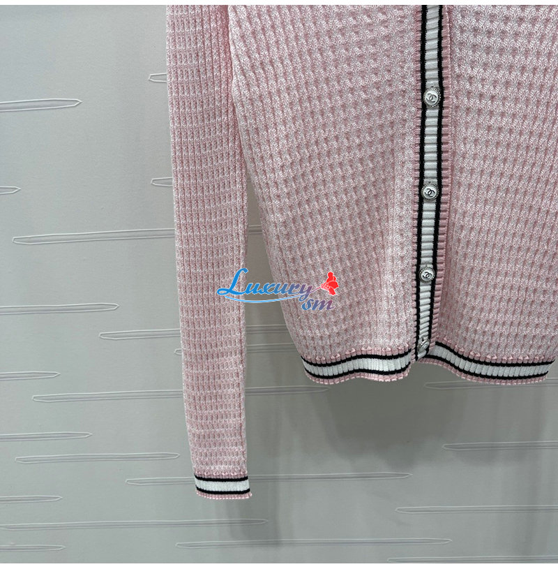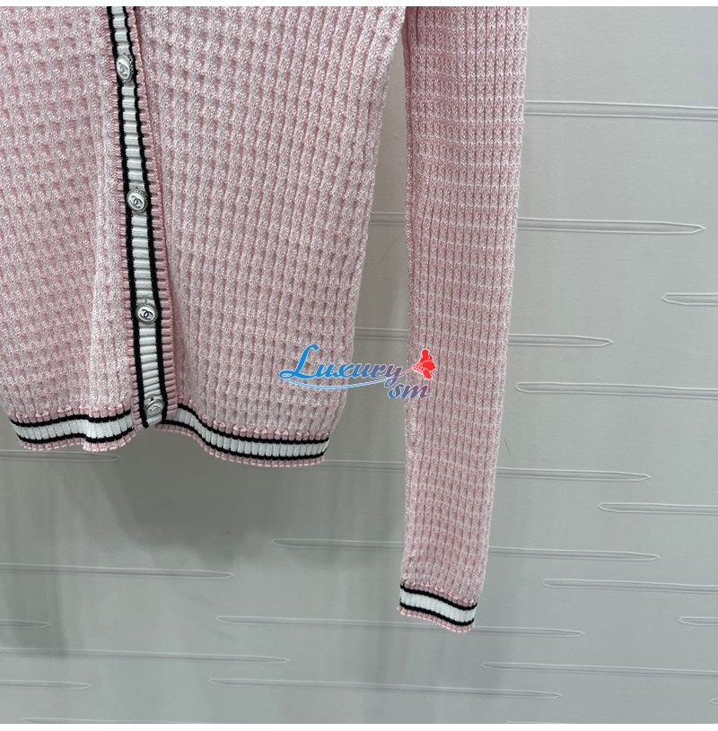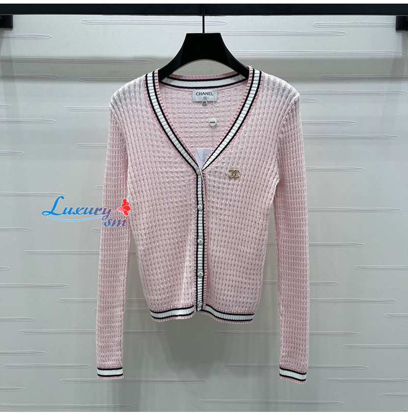 CHANEL-081712 샤넬 핑크 메탈 CC 로고 장식 가디건