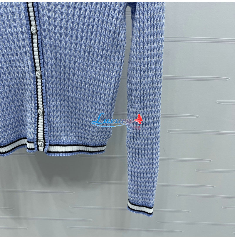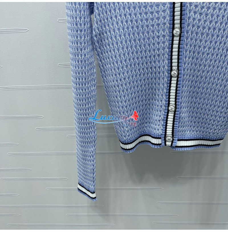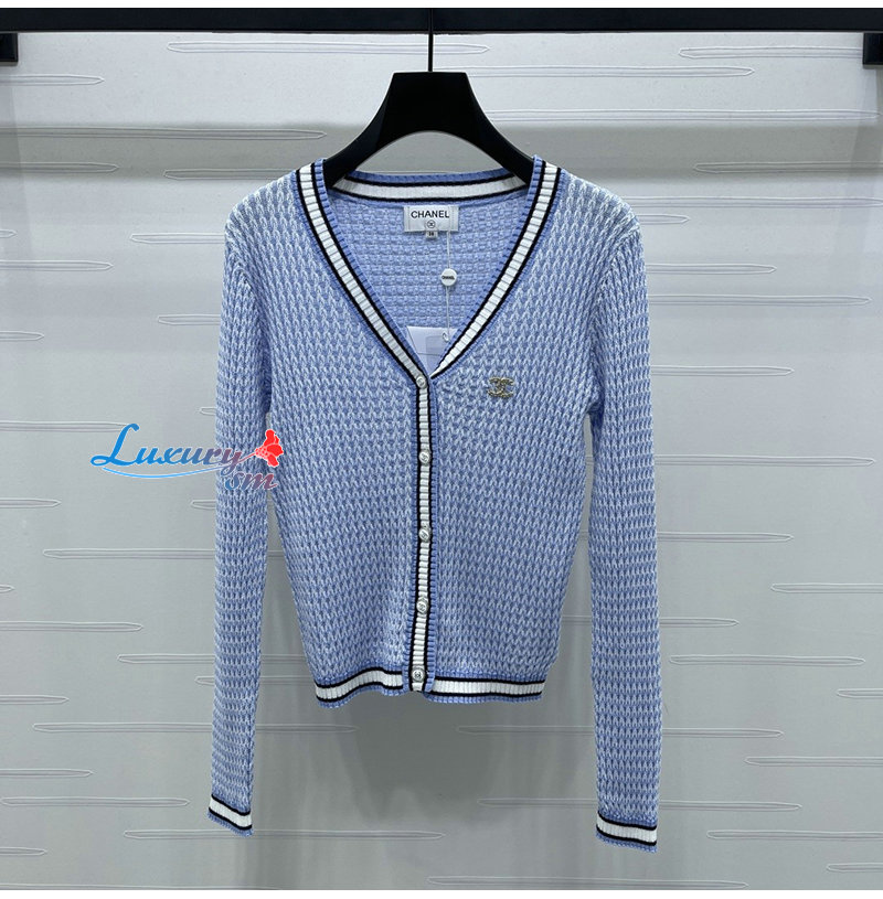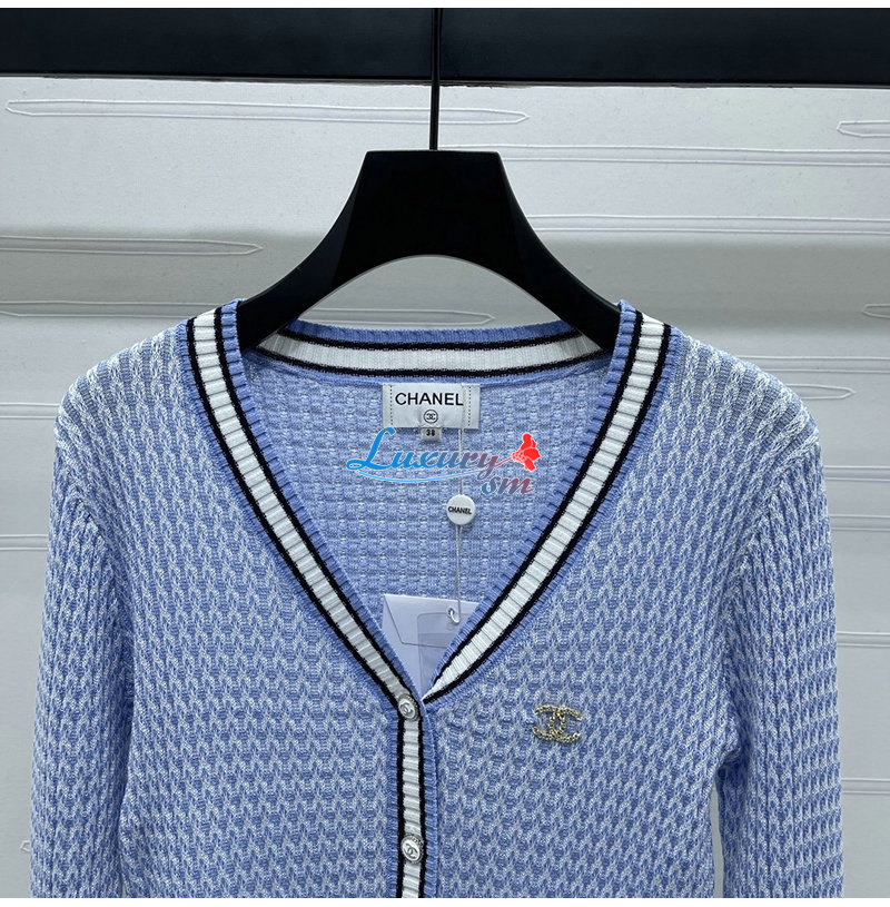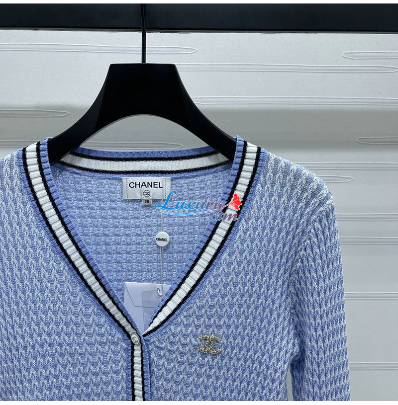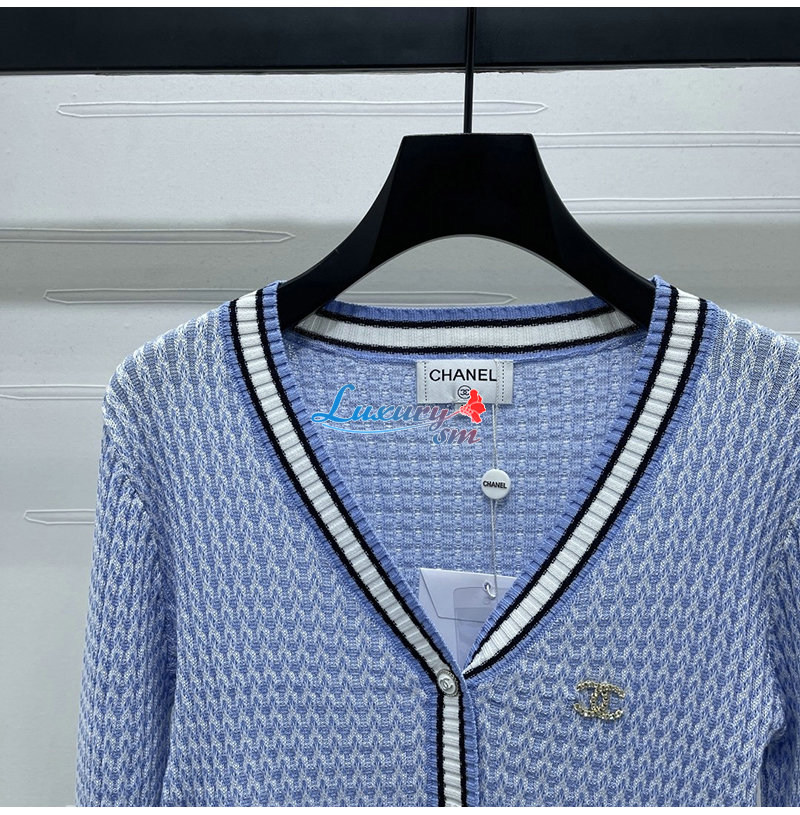 CHANEL-081713 샤넬 블루 메탈 CC 로고 장식 가디건