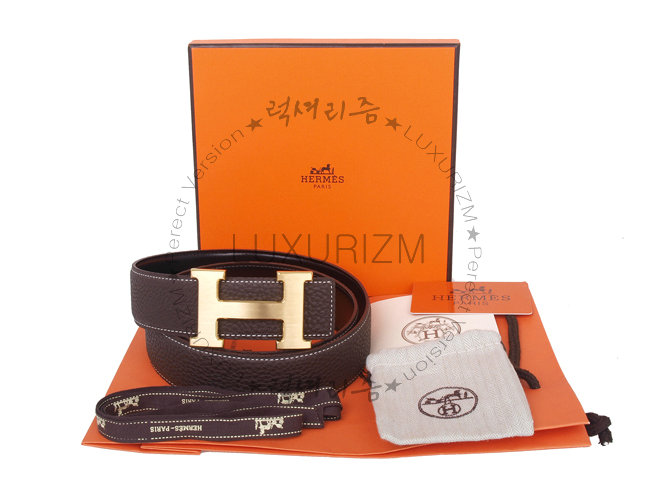 [스페셜오더] HERMES-H로고 벨트 커피 금장/은장