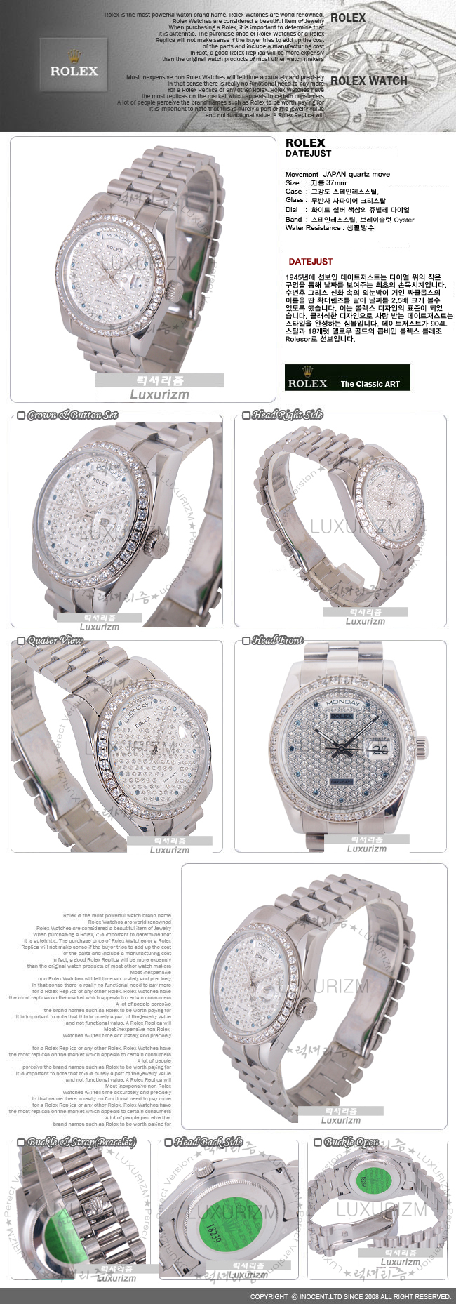 로렉스-15635 DAY-DATE 데이데이트 다이아인덱스 실버 남성용