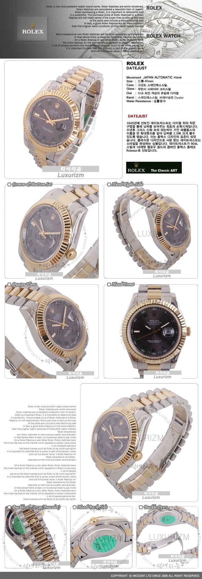 로렉스-0590 Oyster Perpetual DATEJUST 남성용 다크와인판