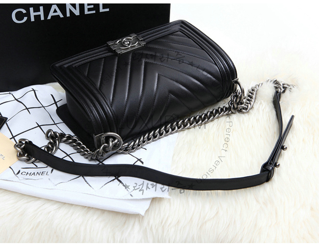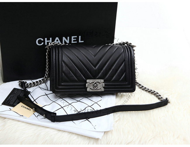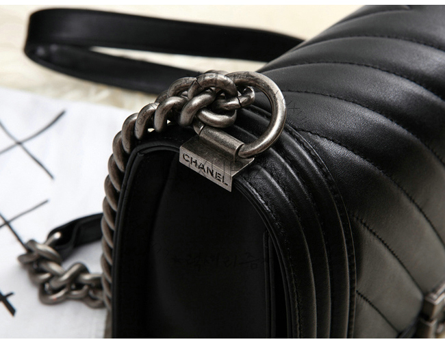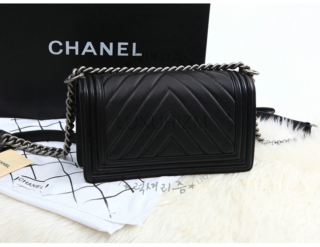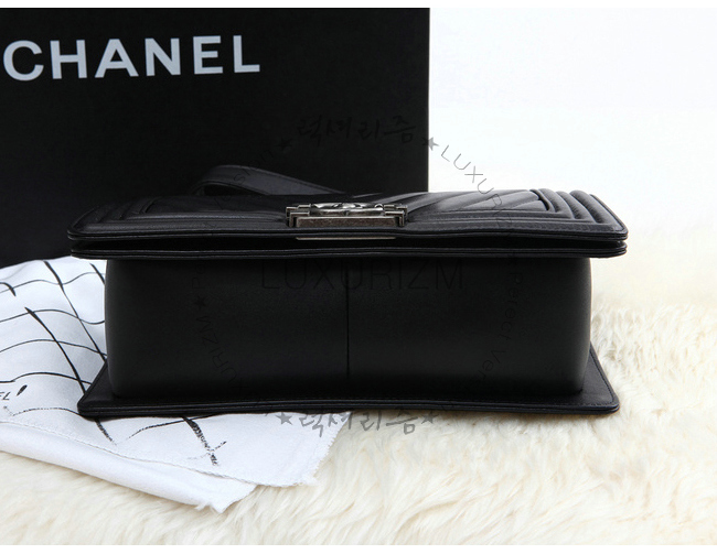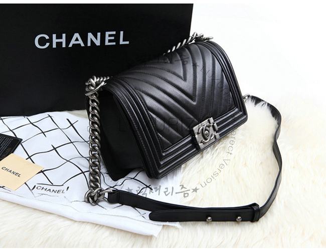[스페셜오더] CHANEL-67086 램스킨 V자 보이백 블랙 은장