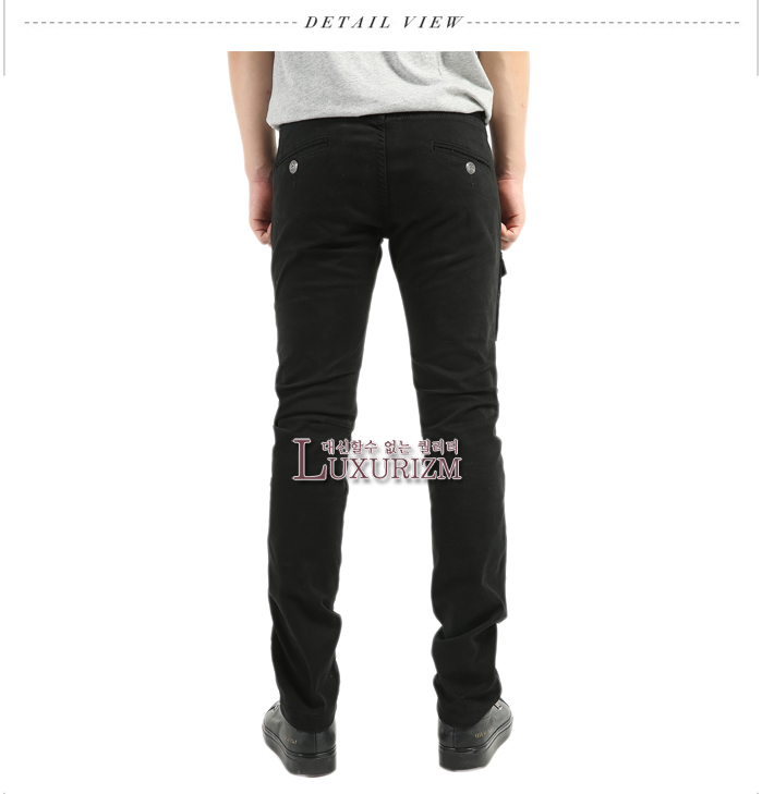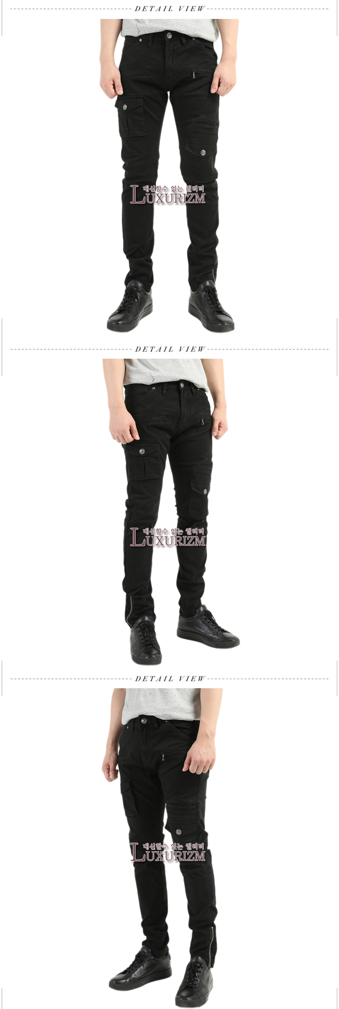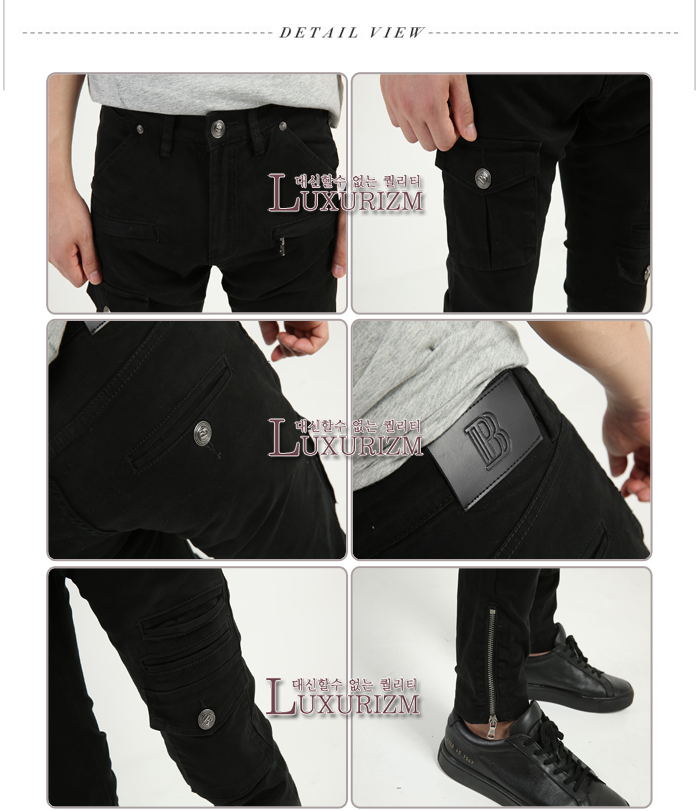 [자체제작] PIERRE BALMAIN-피에르발망 사이드 입체포켓 밑단지퍼 슬림 카고팬츠 블랙
