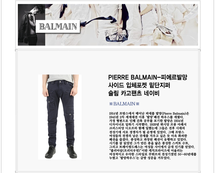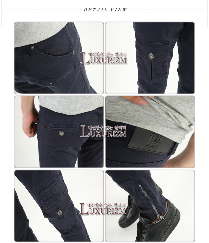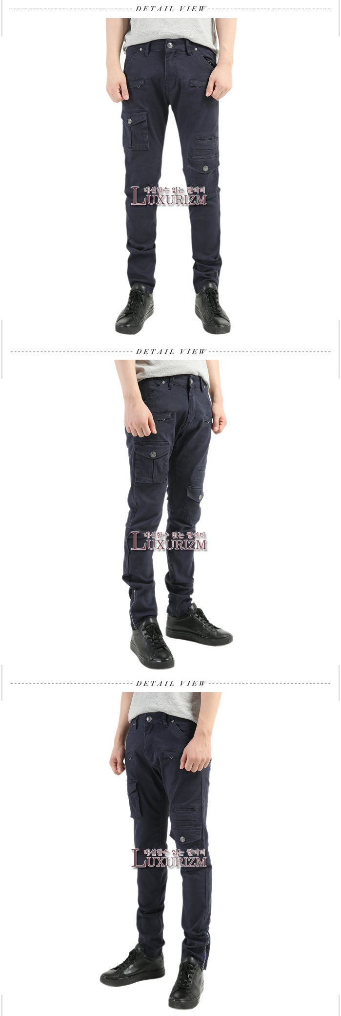 [자체제작] PIERRE BALMAIN-피에르발망 사이드 입체포켓 밑단지퍼 슬림 카고팬츠 네이비