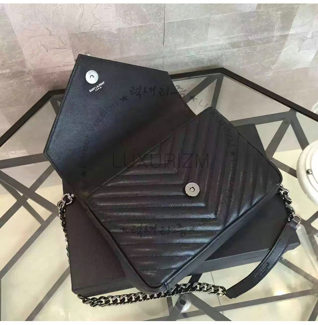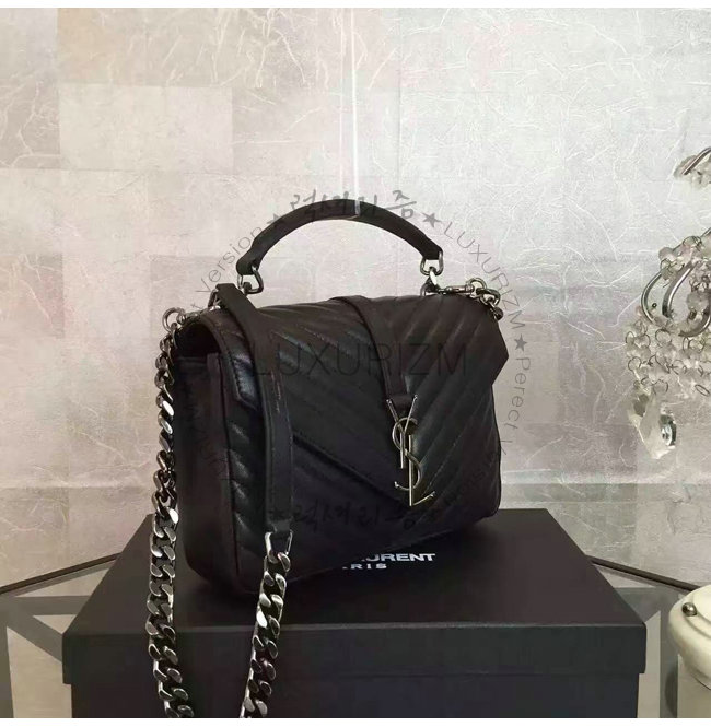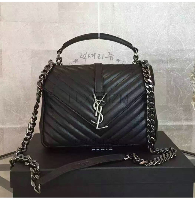 [스페셜오더]SAINT LAURENT-428056 생 로랑 블랙 마틀라세 가죽 클래식 은장 미디엄 모노그램 생 로랑 컬리지 백
