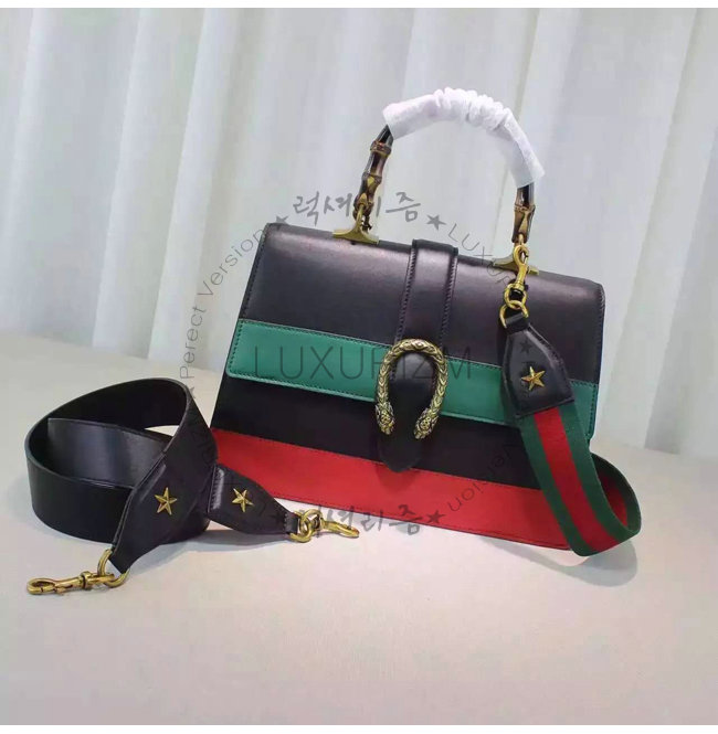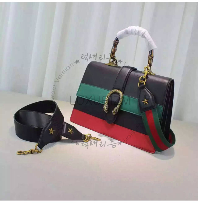 #홍콩 이미테이션 퍼팩트버젼 구찌 421999 dionysus 블랙/그린/레드 가죽 밤부 라지 탑 핸들 백