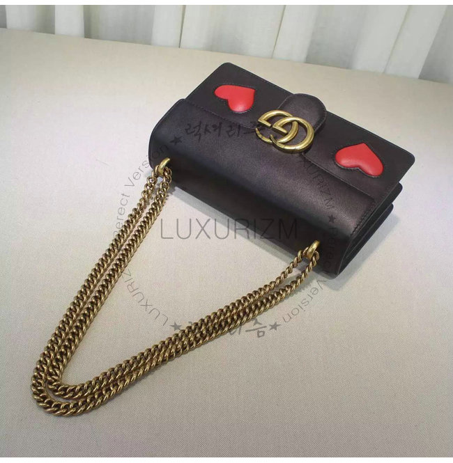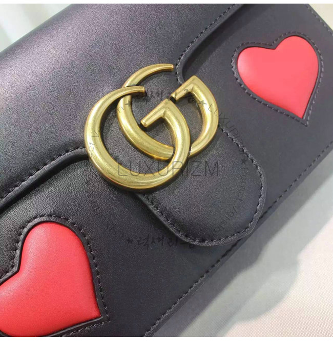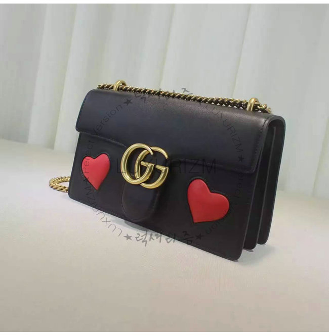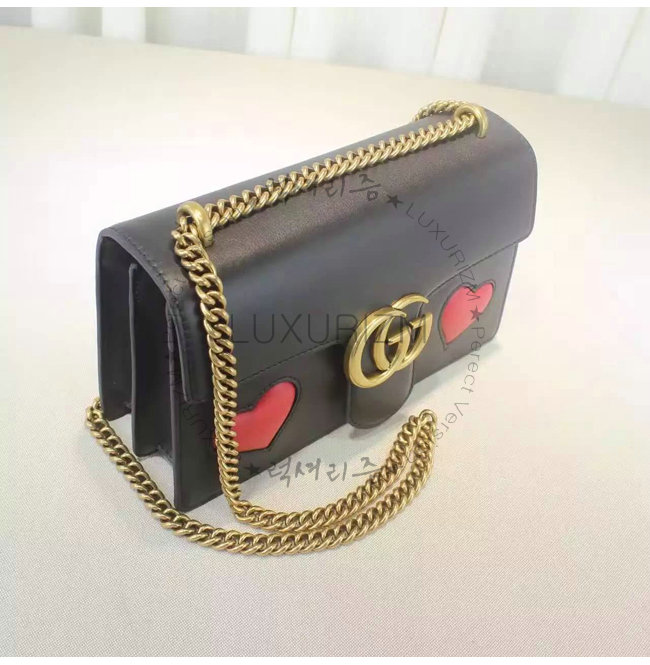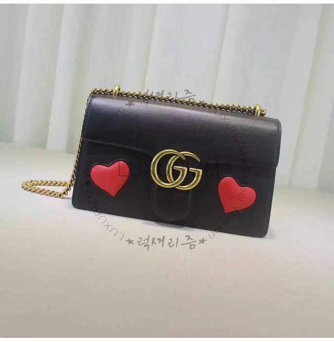 [스페셜오더]GUCCI-431777 8482 GG 구찌 마몽 미디엄 사이즈 스트럭처드 체인 숄더백 블랙 레드 하트