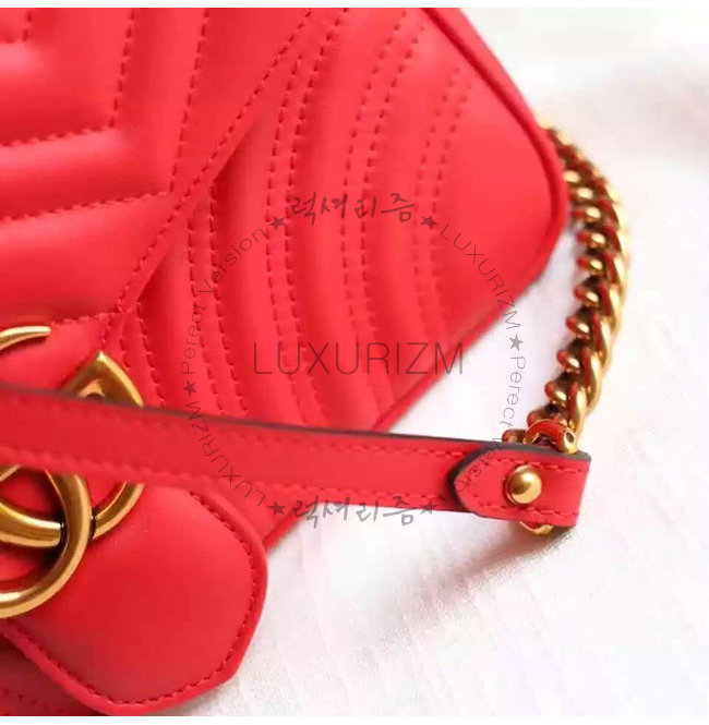 [스페셜오더]GUCCI-443497 6433 구찌 GG Marmont 마몽 마틀라세 스몰 체인 숄더 스트랩백 레드