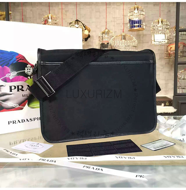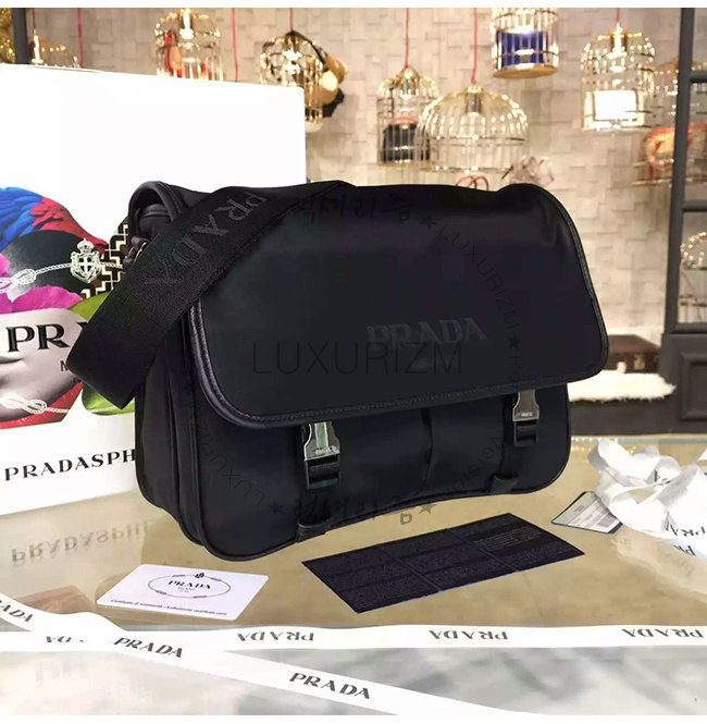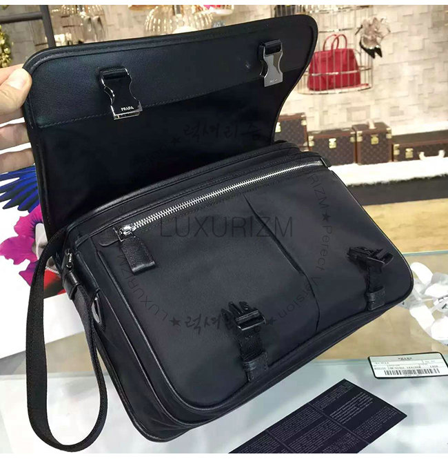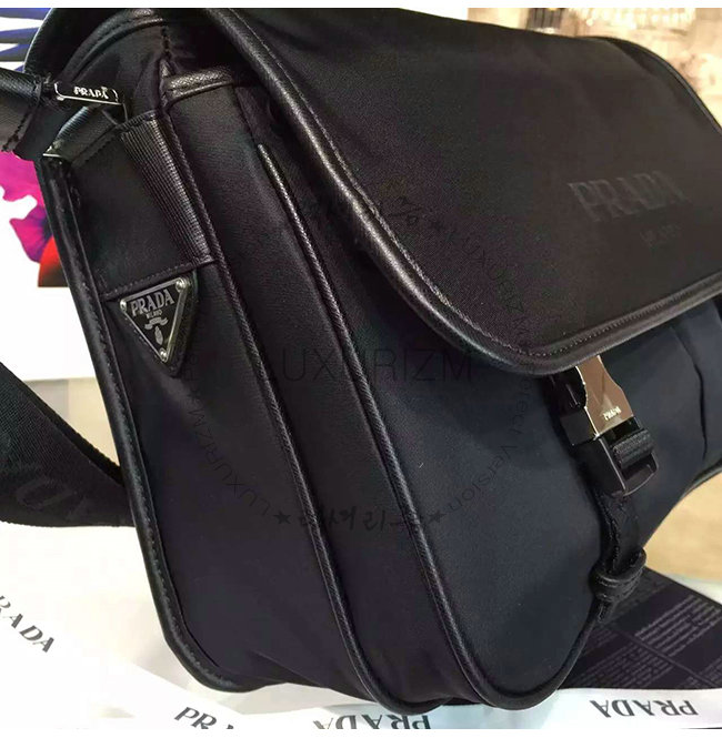 PRADA-2VD769/VA0768 프라다 사피아노 가죽 트림 나일론 플랩 메신져 백 블랙