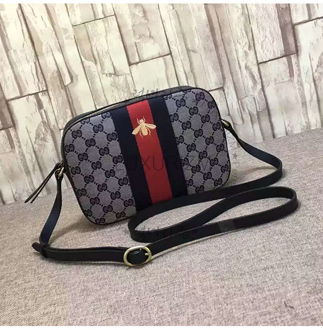 GUCCI-412008 4085 구찌 시그니처 울 web 오리지널 GG 캔버스 벌 자수 스몰 숄더백 블루