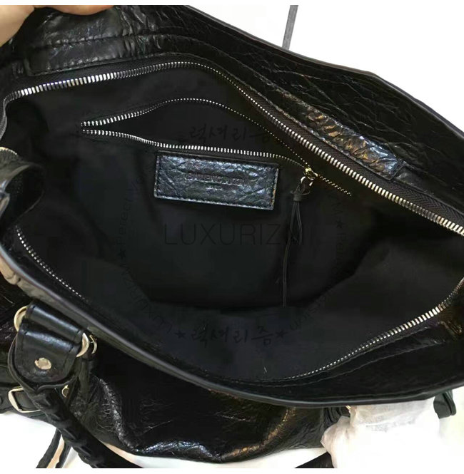 발렌시아가 로고가 인그레이빙된 플레이트 디테일의 내부 지퍼포켓