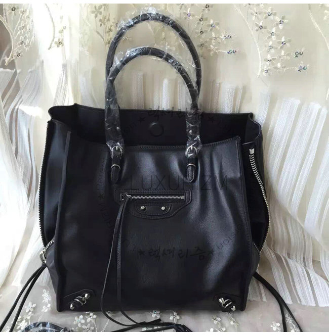 BALENCIAGA-1920 발렌시아가 빠삐에 미니 A4 지퍼 어라운드 크로스백 블랙