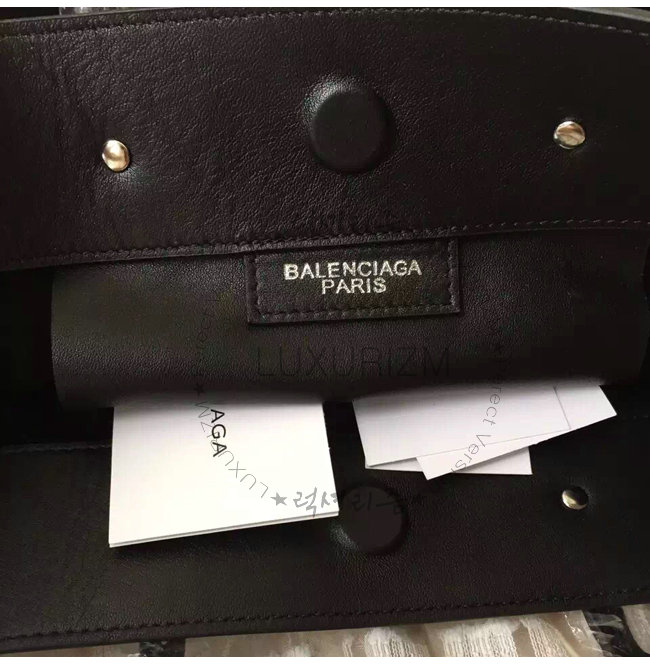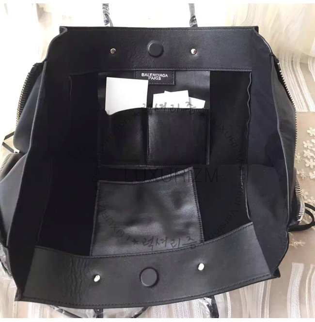 발렌시아가 로고가 새겨진 가죽 라벨 디테일의 내부 지퍼포켓