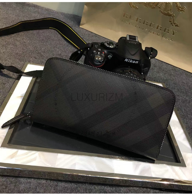 BURBERRY-3998 버버리 스모크 체크 지퍼라운드 지갑 블랙/네이비