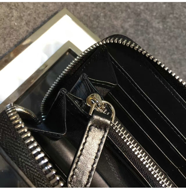 같은 계열 색상의 스티치 디테일과 스모크 체크가 돋보이는 지퍼라운드 지갑