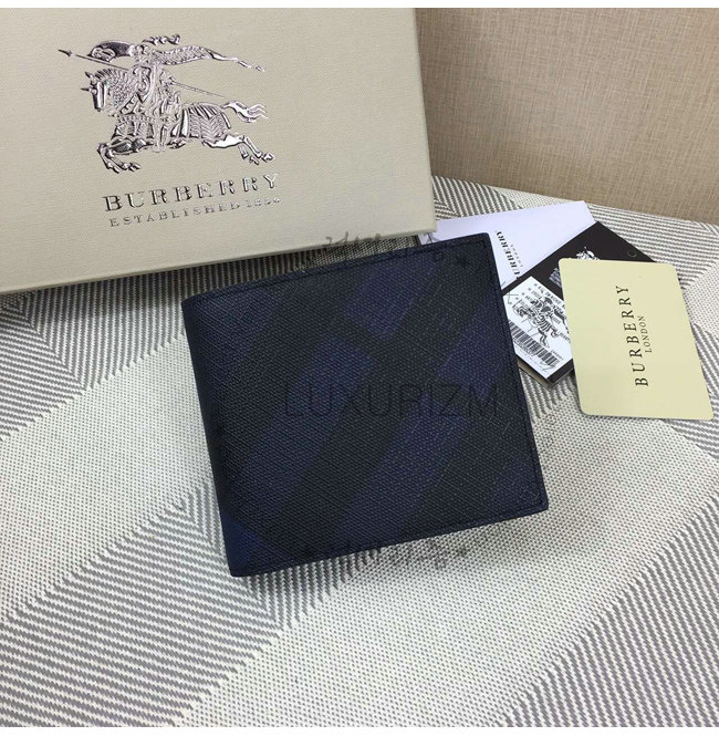 BURBERRY-1911 버버리 스모크 체크 반지갑 블랙/네이비