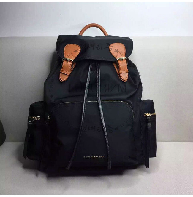 BURBERRY-380233 버버리 미디엄 테크니컬 나일론 가죽 럭색 블랙