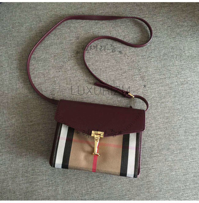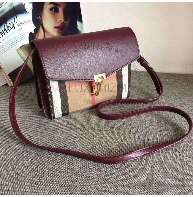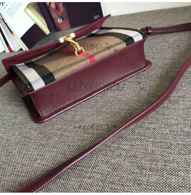 BURBERRY-39753271 버버리 스몰 가죽 하우스 체크 크로스바디 백 마호가니 레드