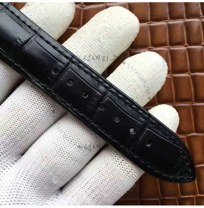 -스테인레스 스틸 케이스/사파이어 글래스 투명케이스 백/블루 가죽 스트랩.