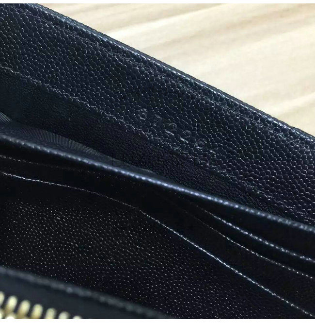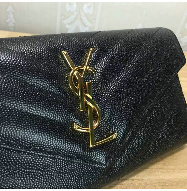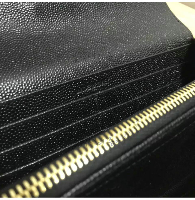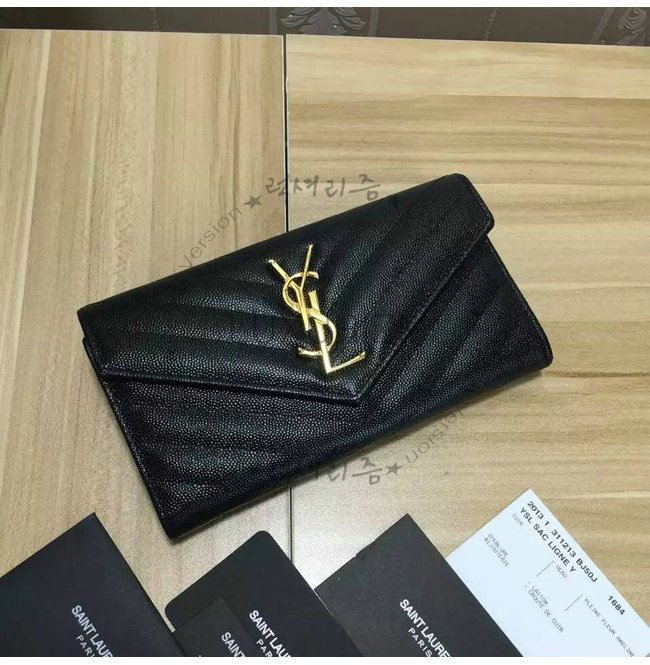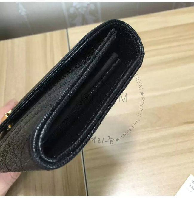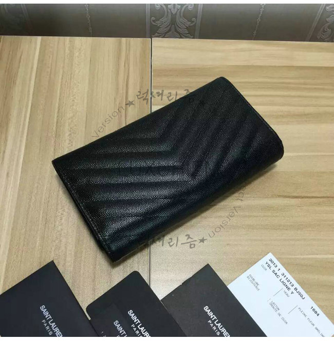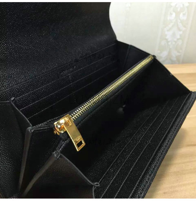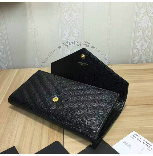 SAINT LAURENT-372264 생로랑 블랙 그랑 드 뿌드르 텍스처드 마틀라세 가죽 라지 모노그램 생 로랑 플랩 장지갑