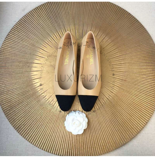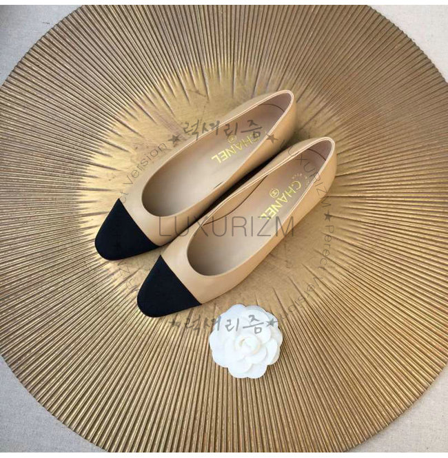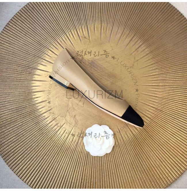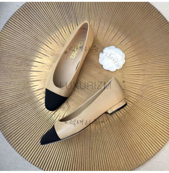 CHANEL-9057 샤넬 스웨이드 카프스킨 플랫 슈즈 블랙/베이지