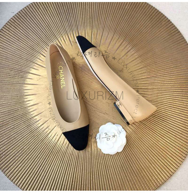CHANEL-9057 샤넬 스웨이드 카프스킨 펌프스 블랙/베이지